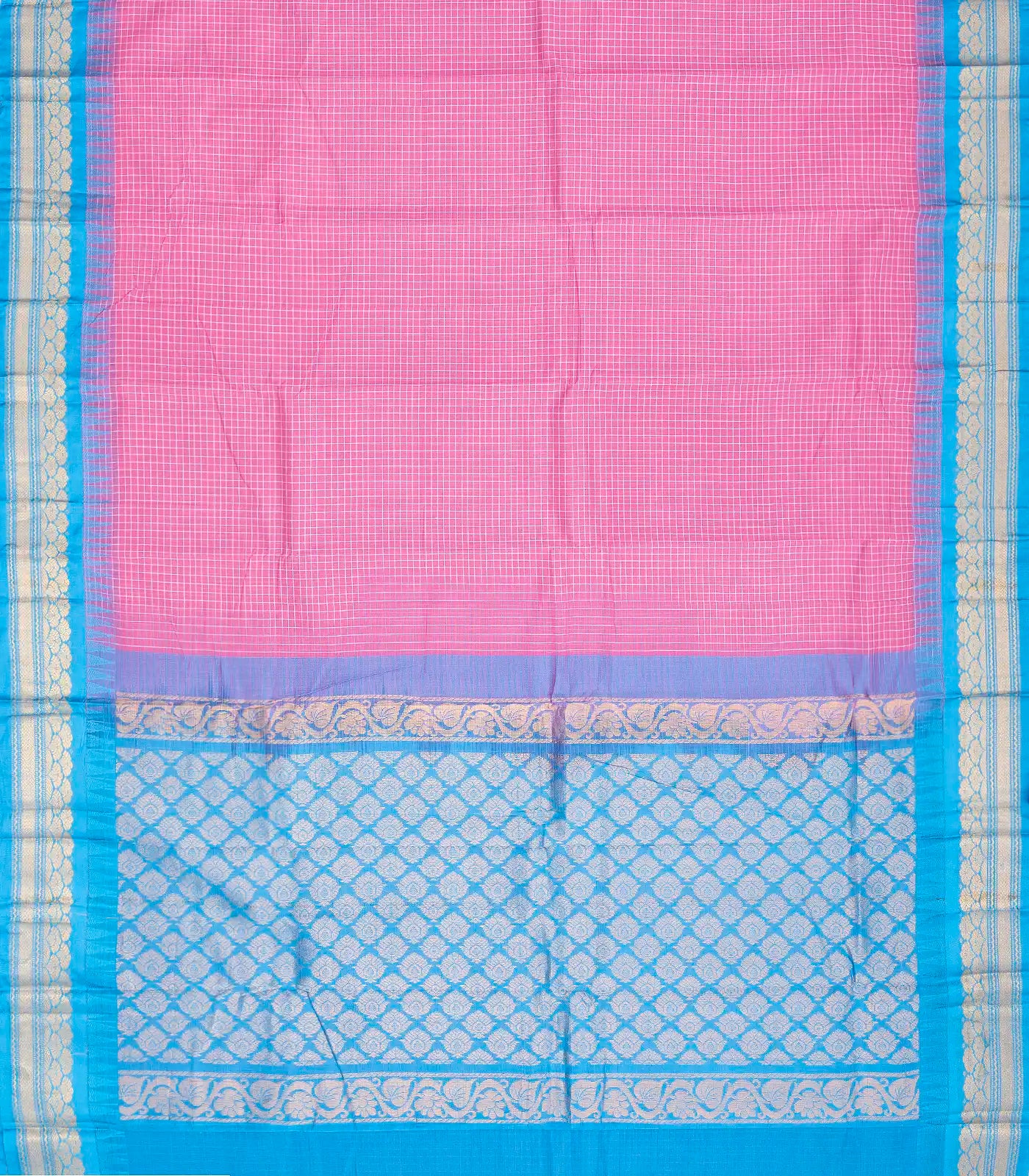 BubbleGum Pink Woven Chirala Cotton Saree With Zari Checks & Contrast Temple Border-CR1309