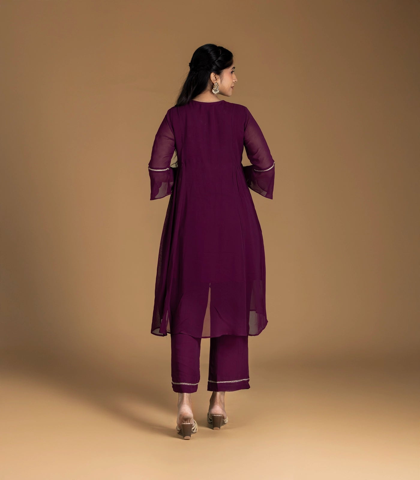 Burgundy Embroidered Festive Co-Ord Set-CO5015