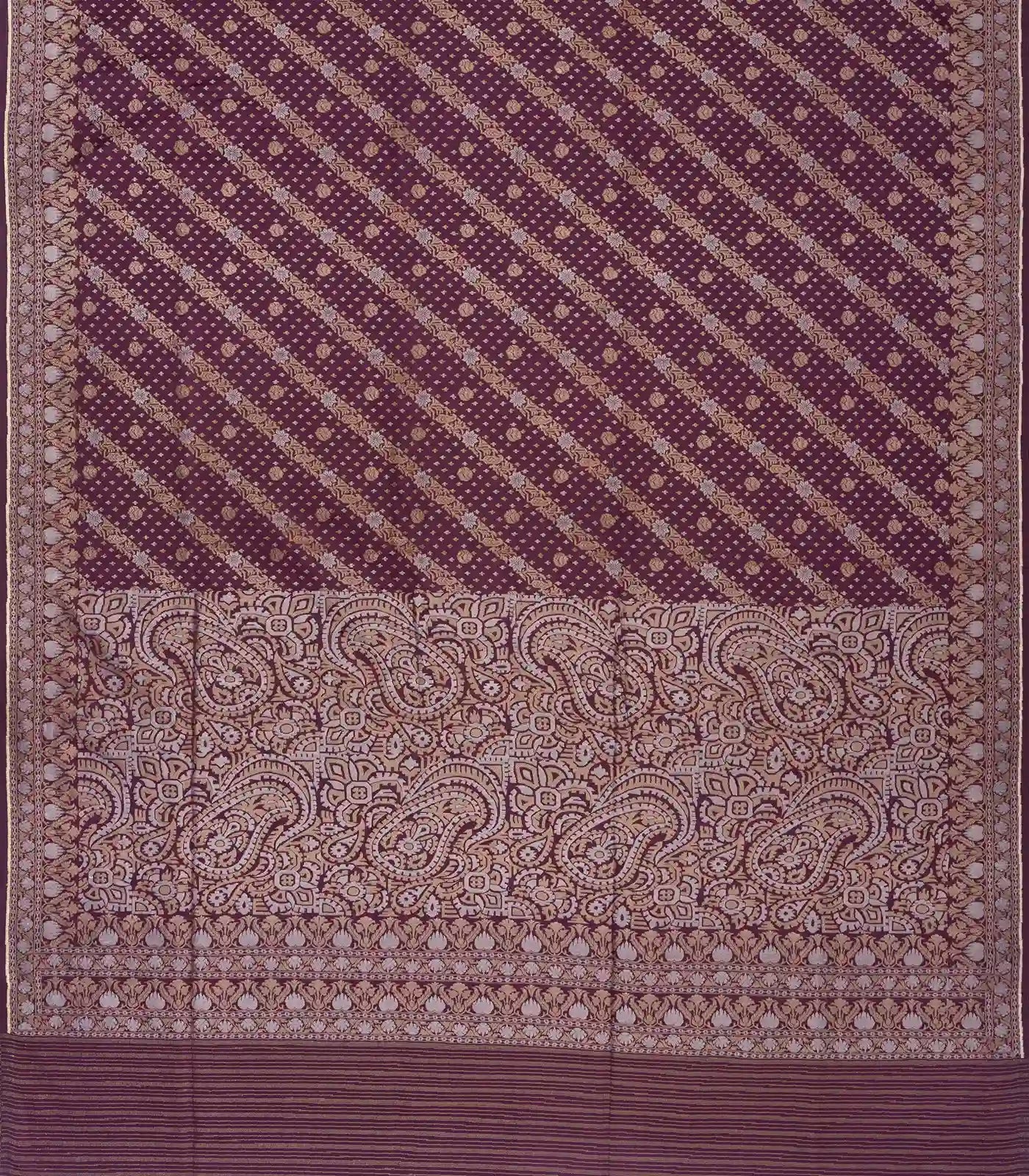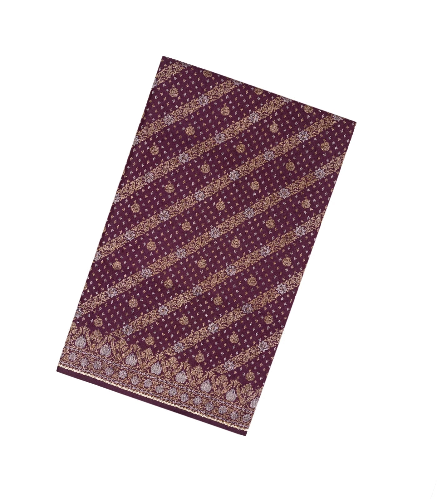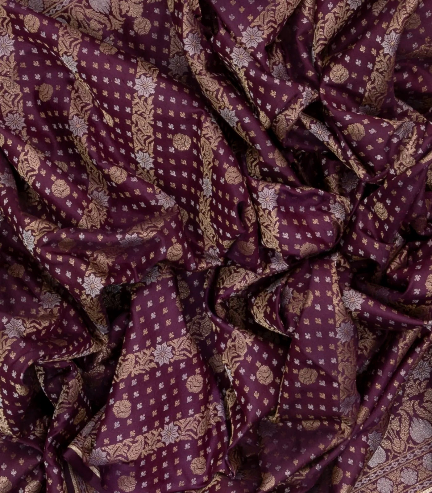 Burgundy Handloom Banarasi Silk Saree With Floral Motifs-BE1291