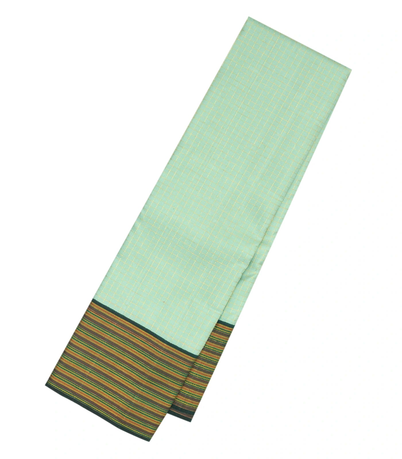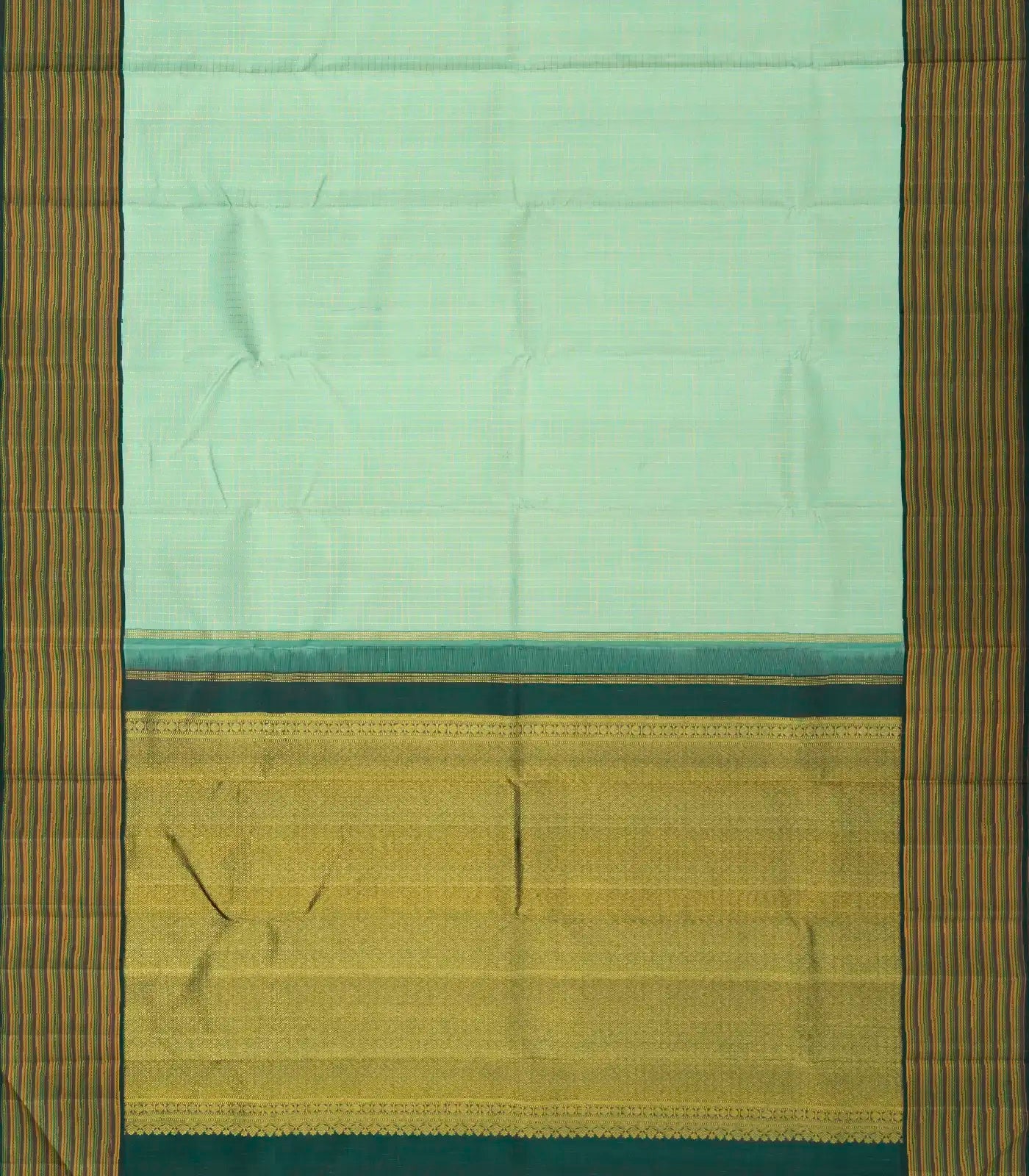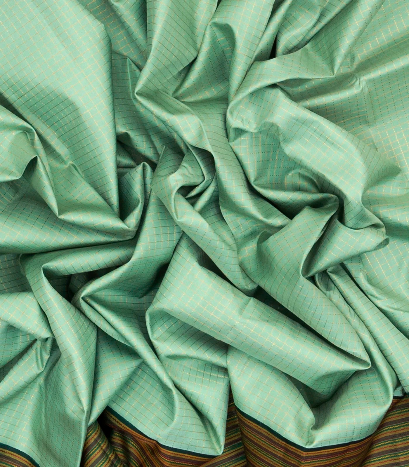Cardamom Green Handloom Korvai Kanchipuram Silk Saree With Checks-KA12267