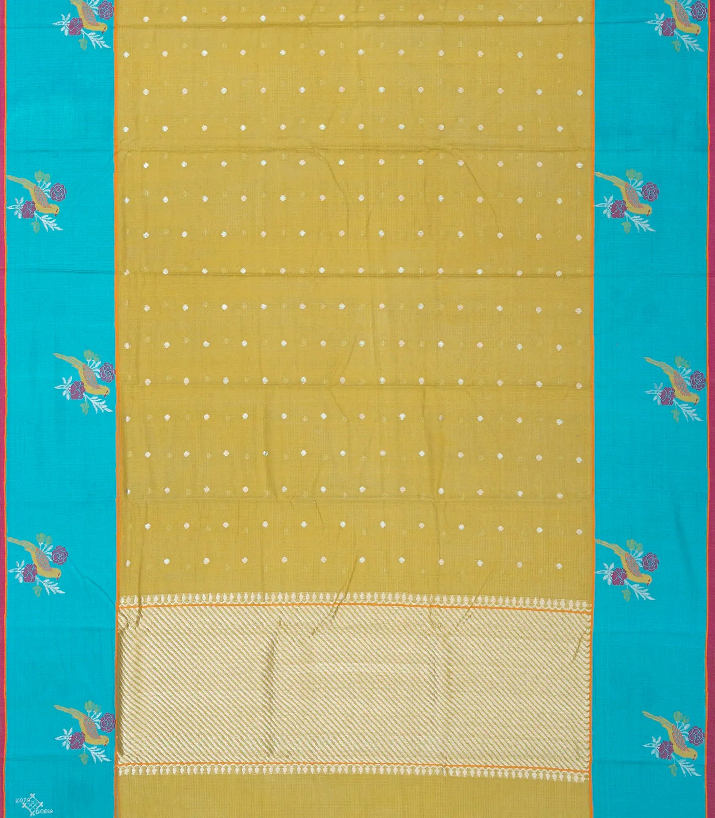 Cardamom Green Handloom Kota Silk Saree With Floral Zari Buttas-KO1012