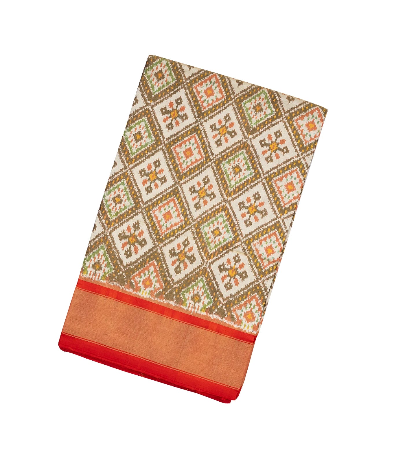 Cardamom Green Handloom Pochampally Ikat Silk Saree With Tie & Dye Motifs-IK0398