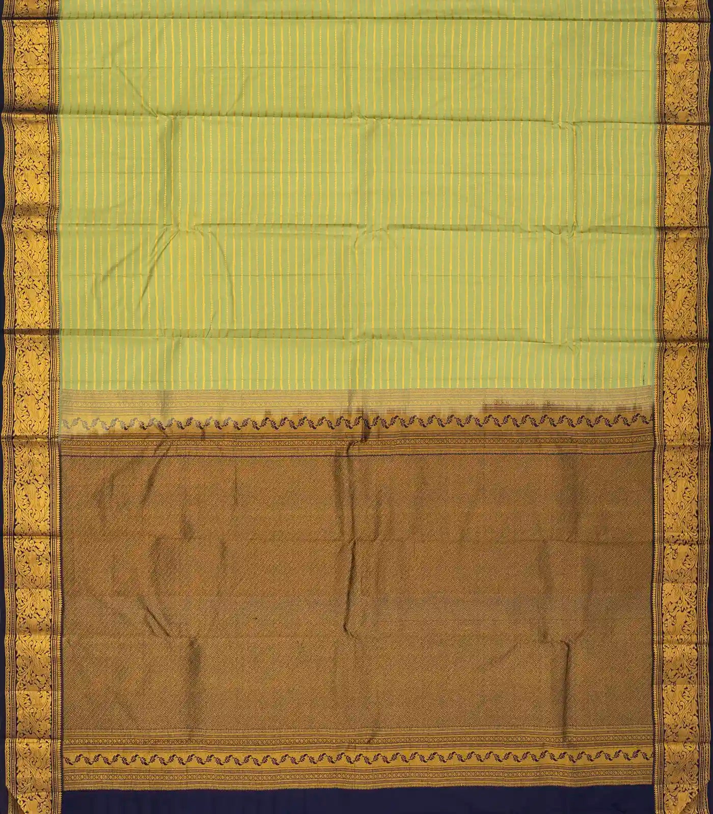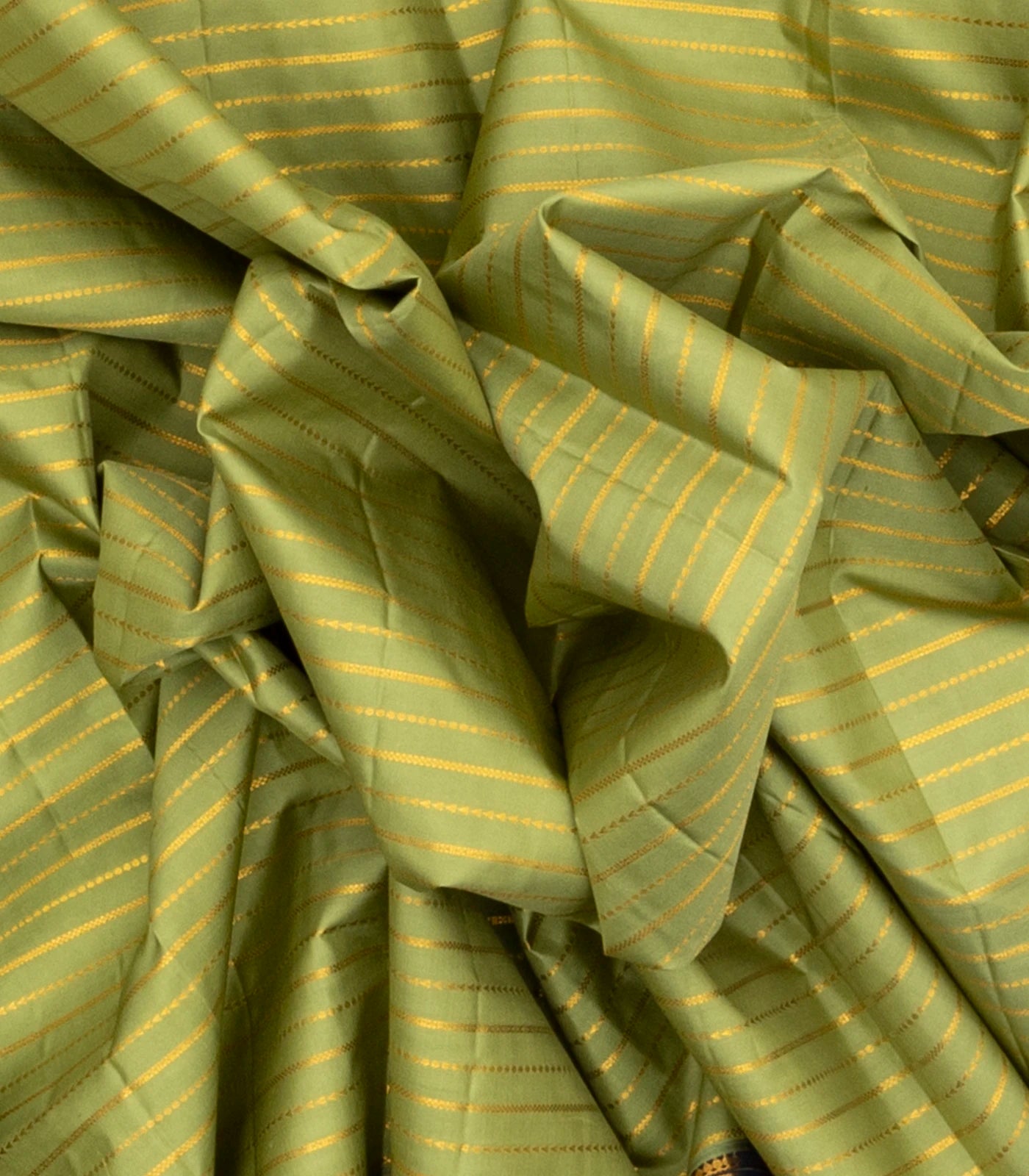 This silk saree is filled with zari stripes in cardamom green body along with contrast border and pallu