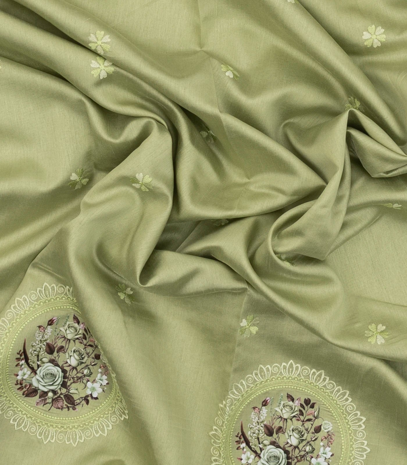 Cardamom Green Woven Art Tussar Saree With Printed & Embroidered Floral Motifs-BL4722
