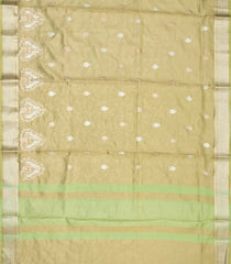 This woven crushed tissue saree filled with embroidery floral motifs in cardamom green body along with zari border and pallu