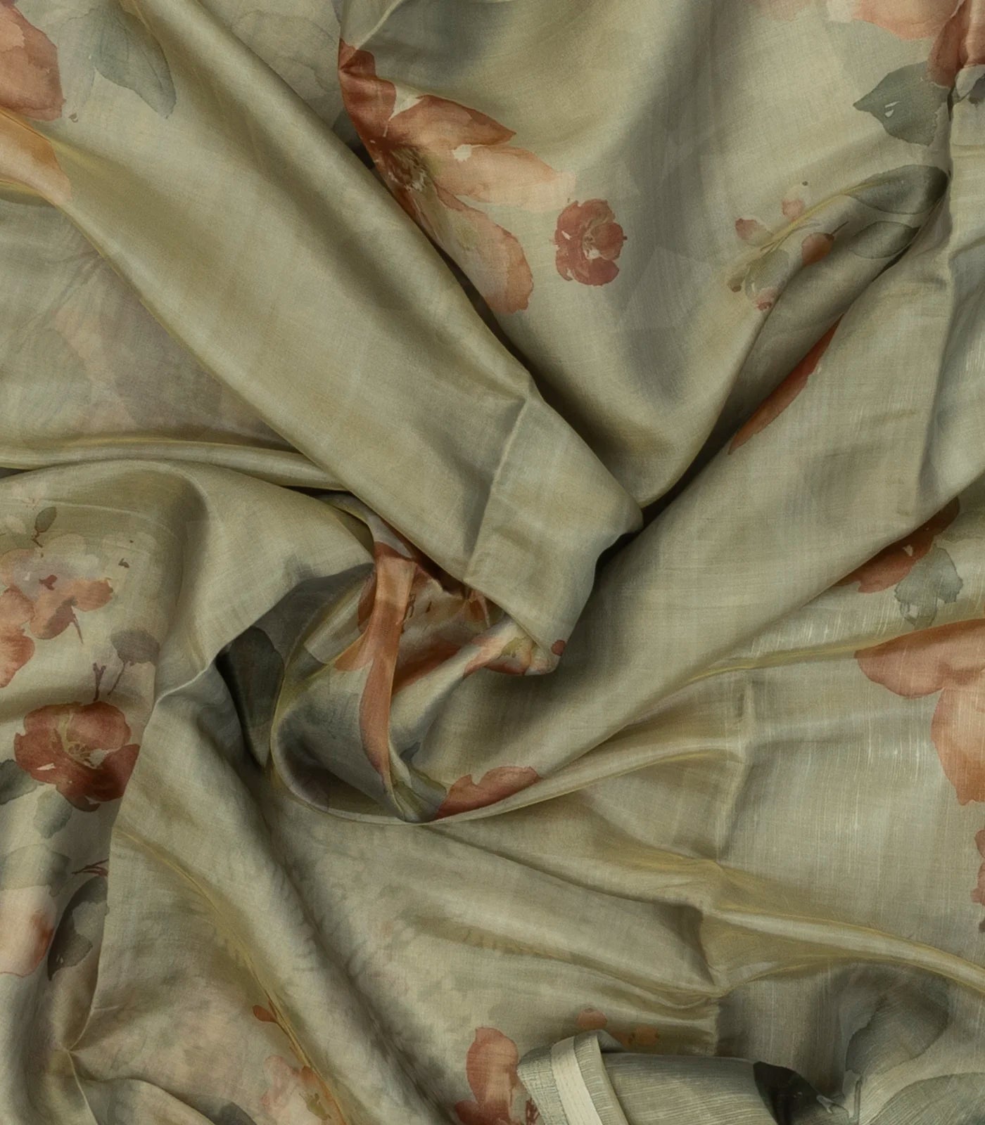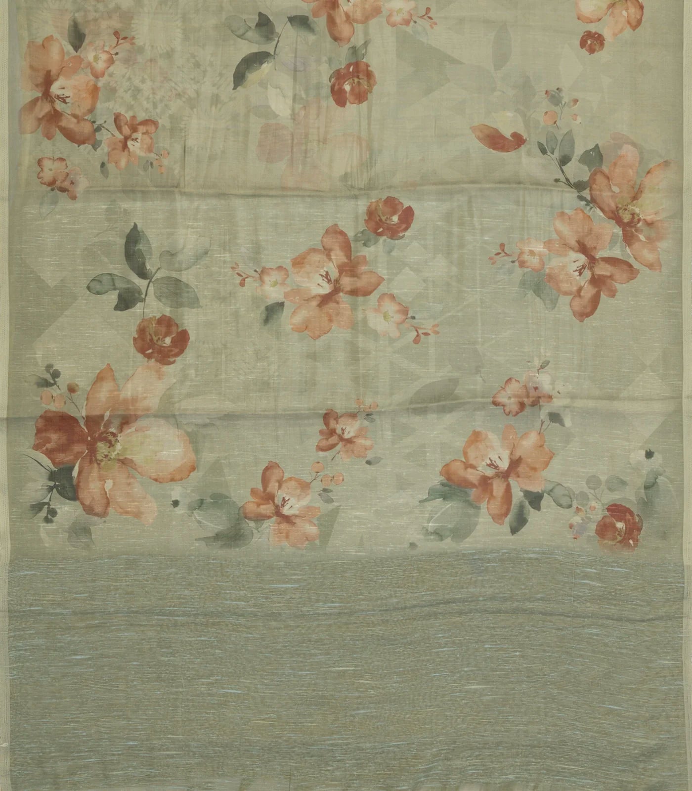 Cardamom Green Woven Synthetic Cotton Saree With Printed Floral Motifs-BL4707