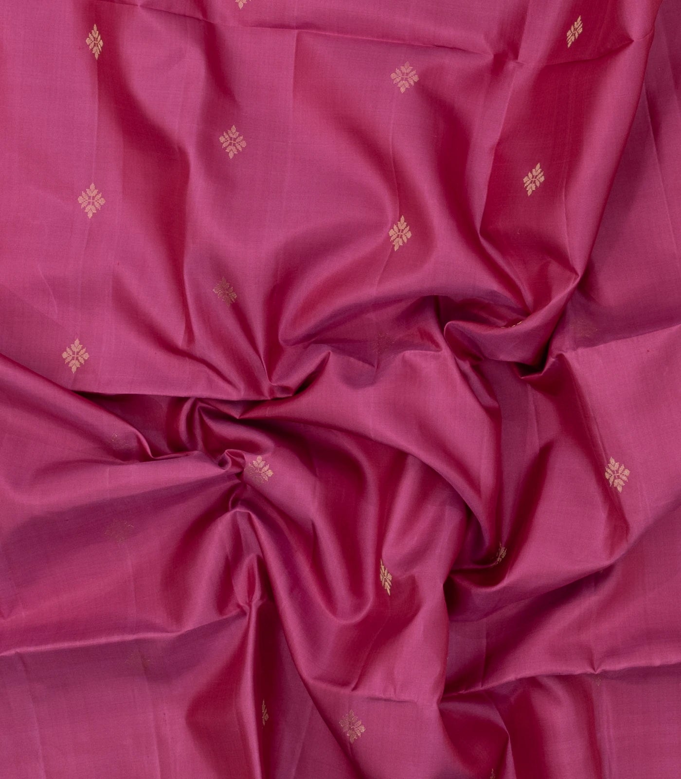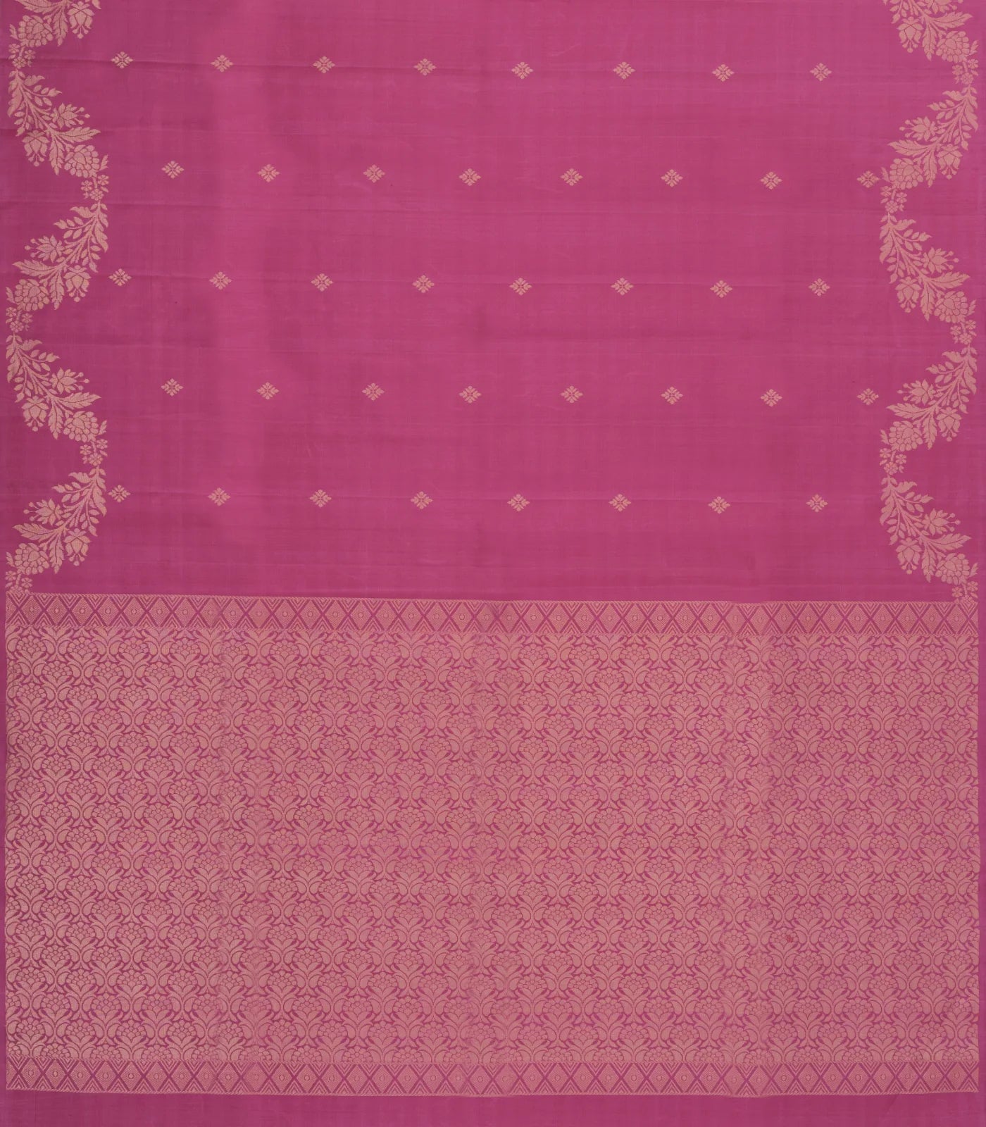 This handwoven soft silk saree is filled with floral buttas in chestnut pink body along with border and pallu