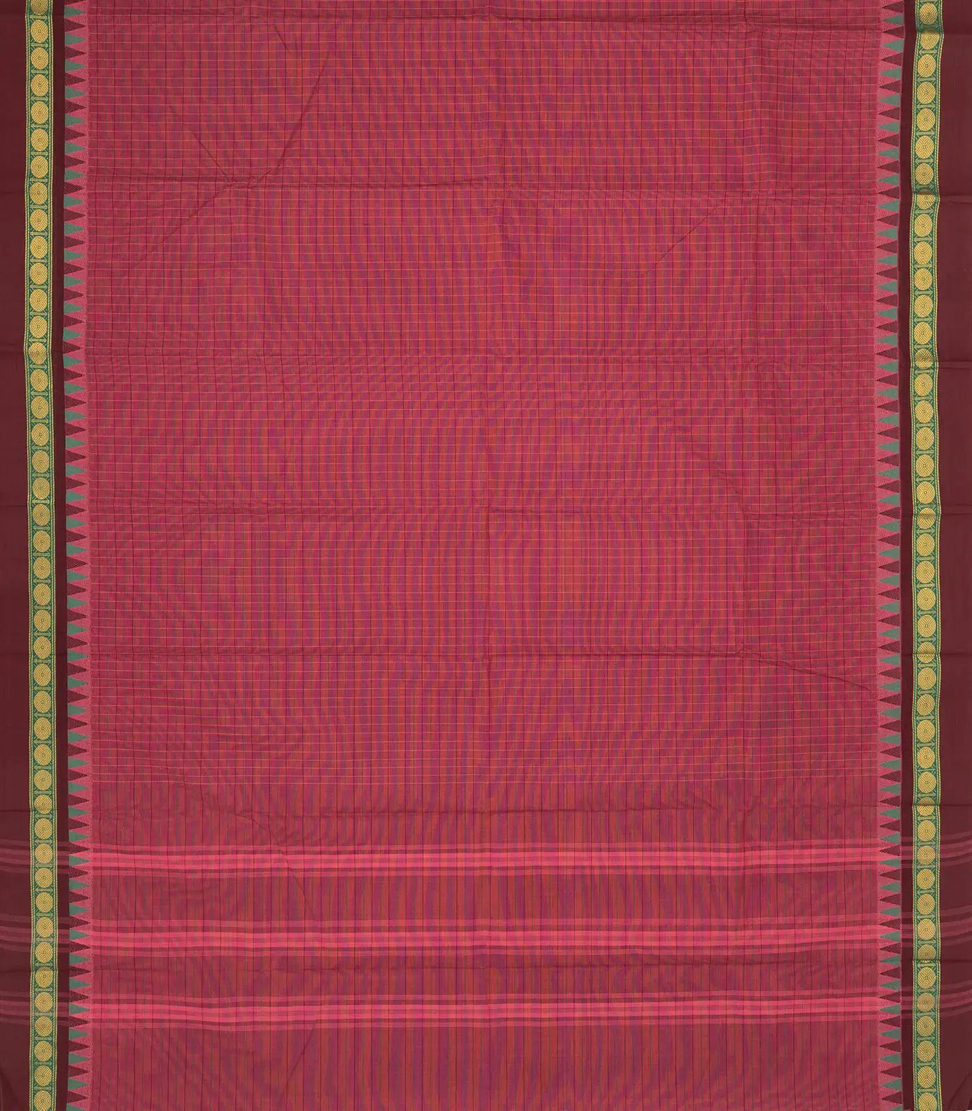 Chesnutt Pink Woven Chettinad Cotton Saree With Checks & Contrast Border-CN1825