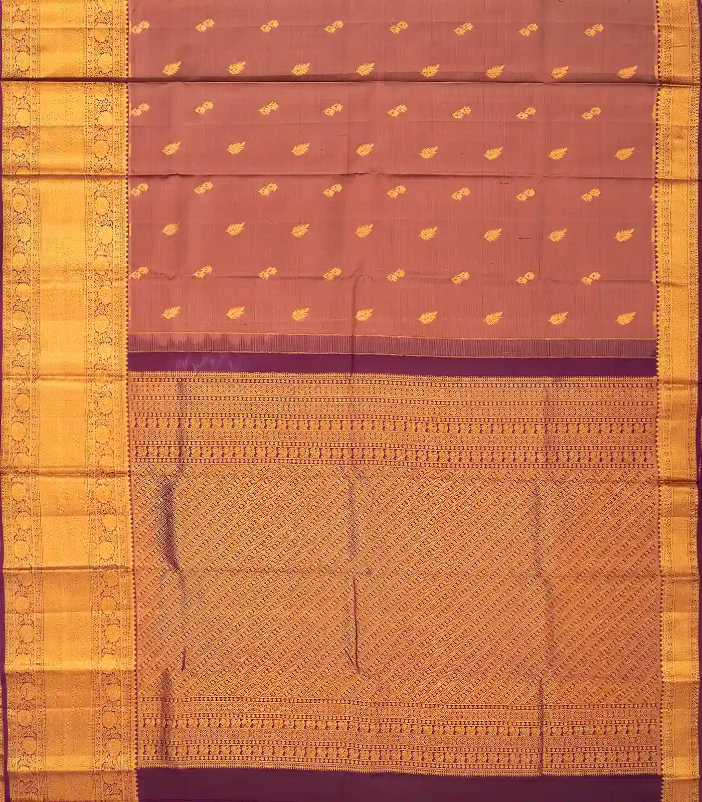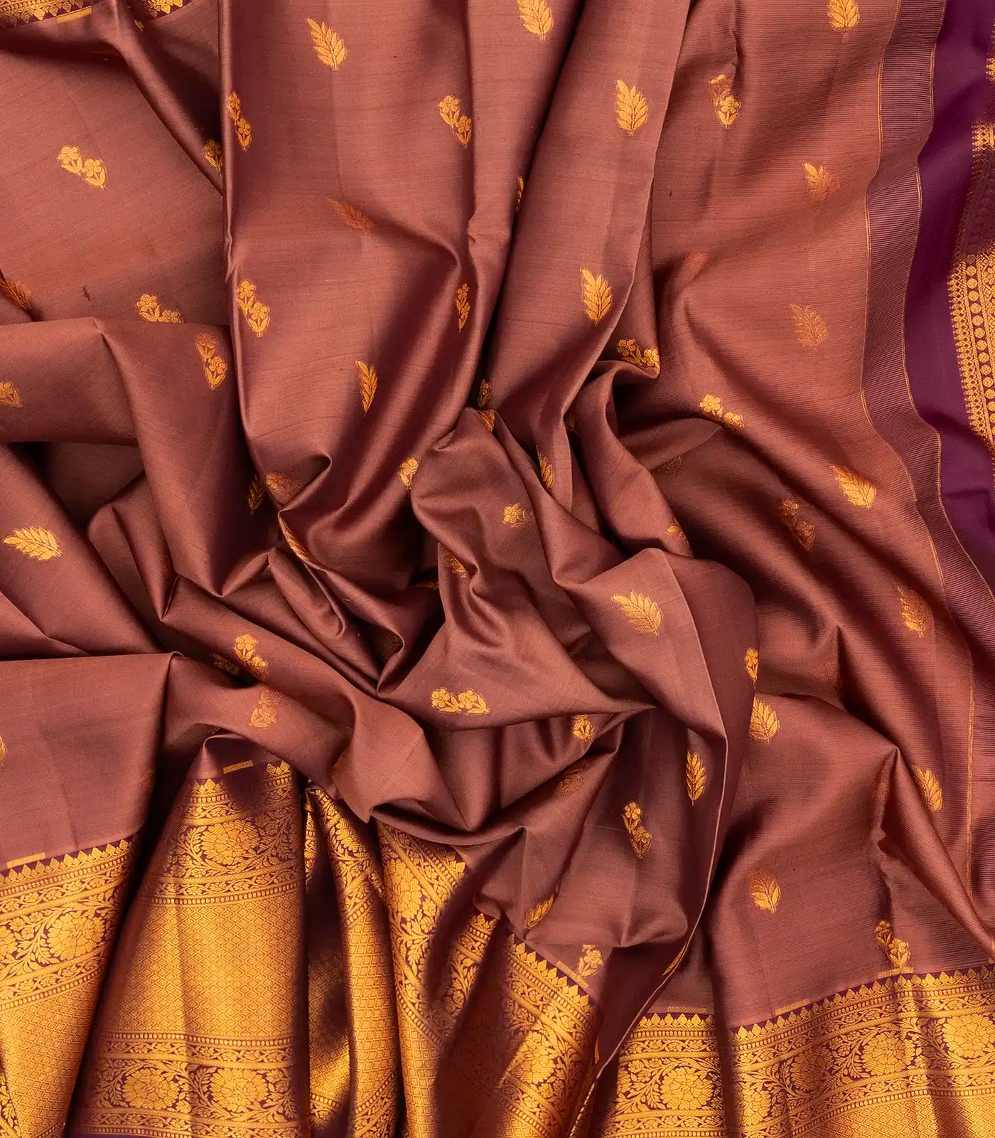 Chocolate Woven Kanchipuram Silk Saree With Floral Buttas-KA12133