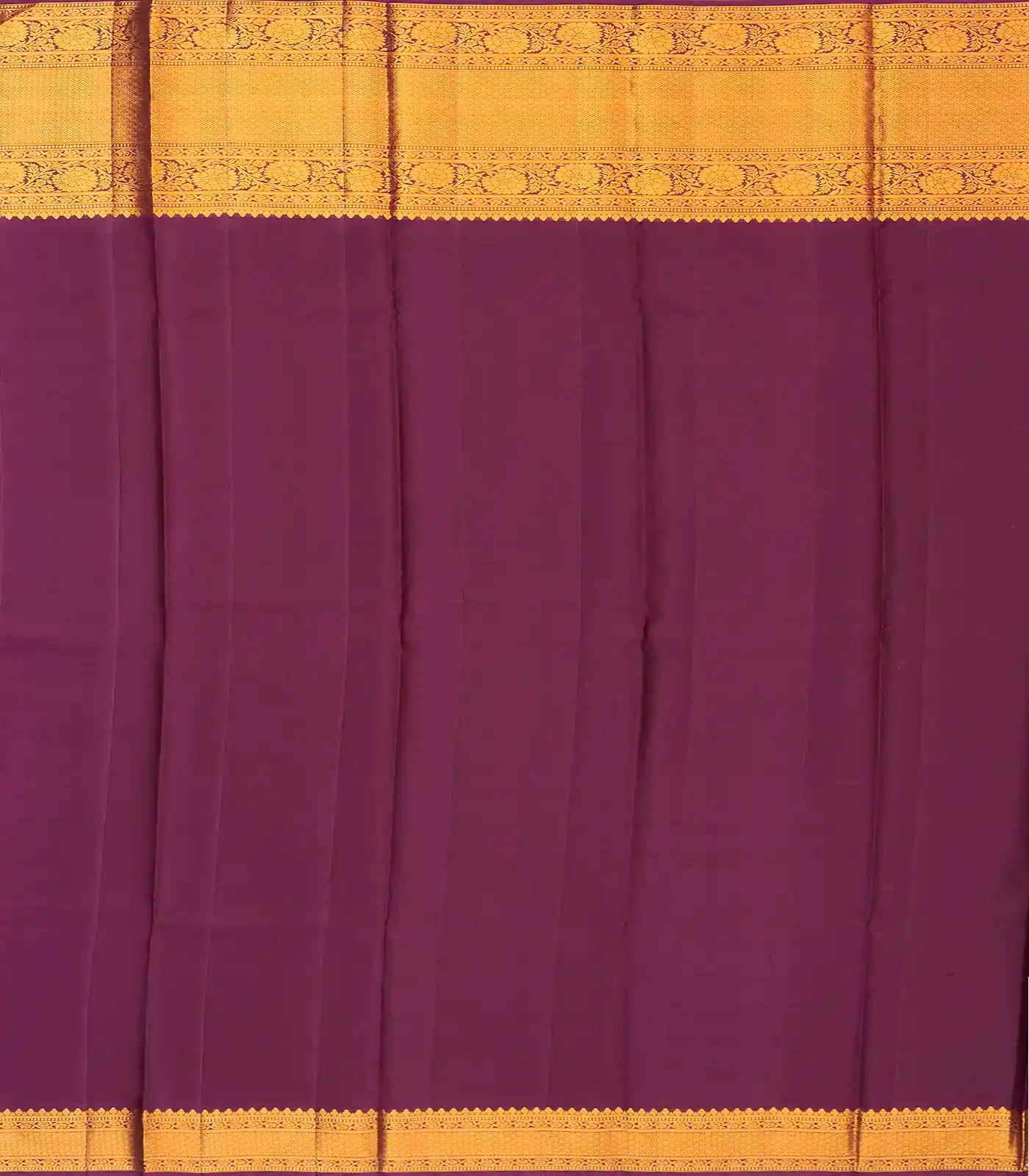This woven kanchipuram silk saree is filled with floral motifs in chocolate body along with zari border and pallu