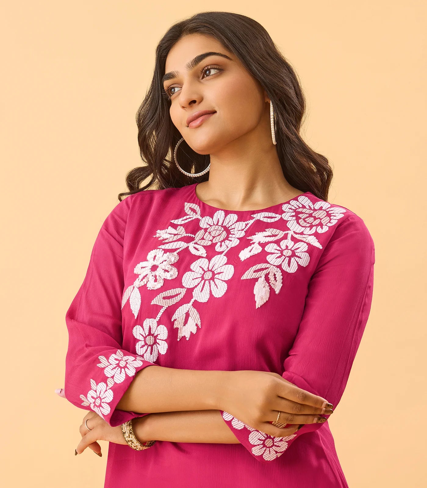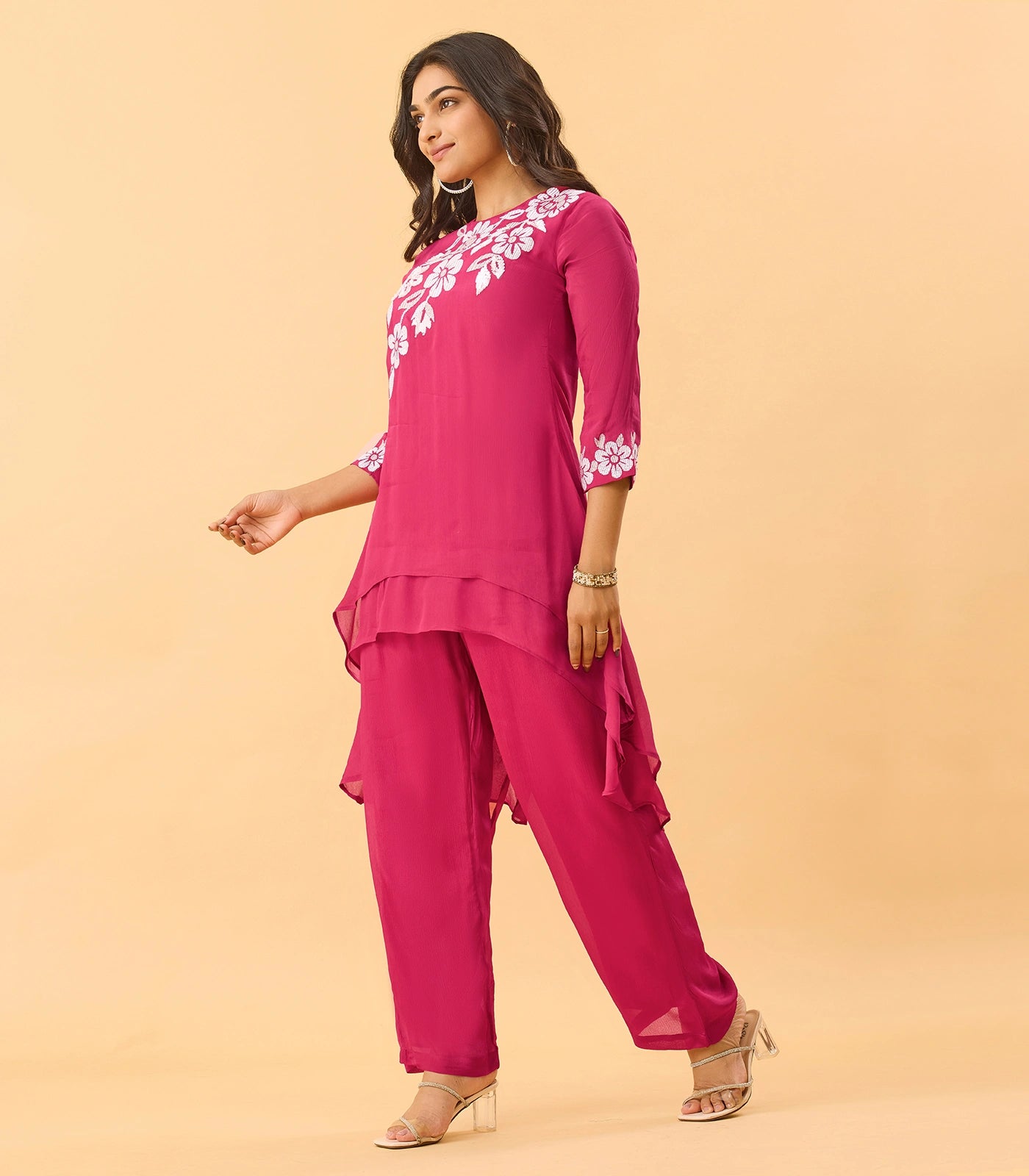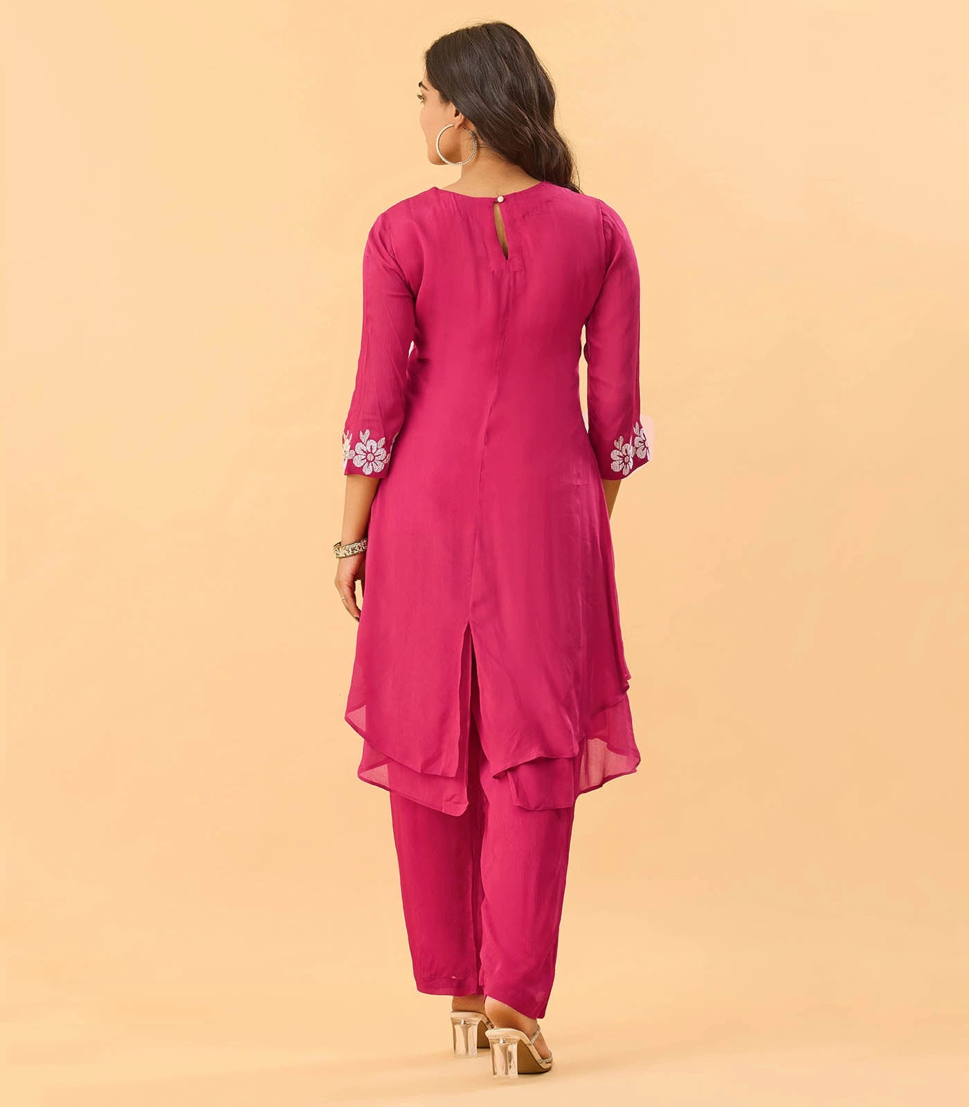 Co-Ord Fuschia Pink Floral Embroidered Kurta Set