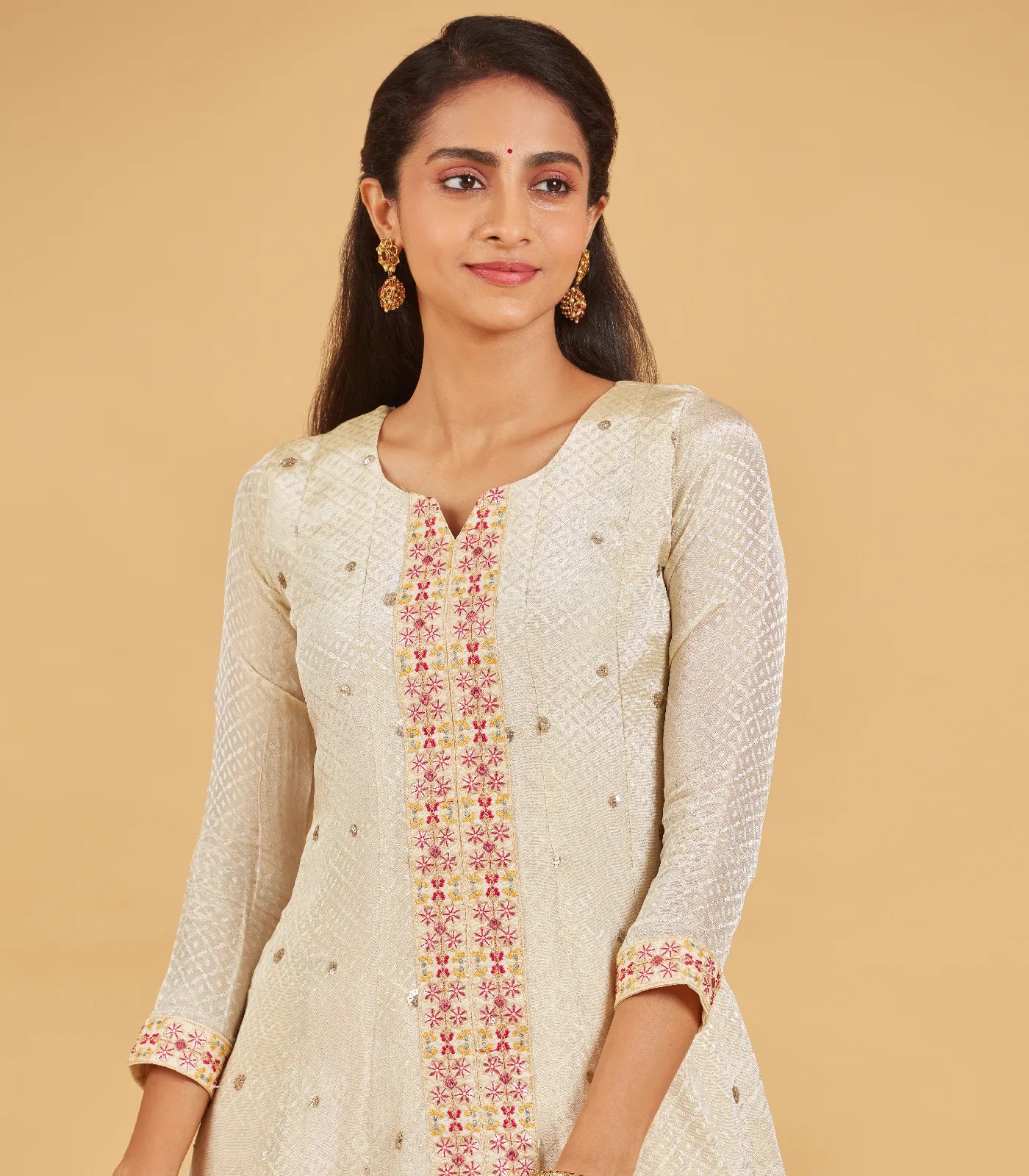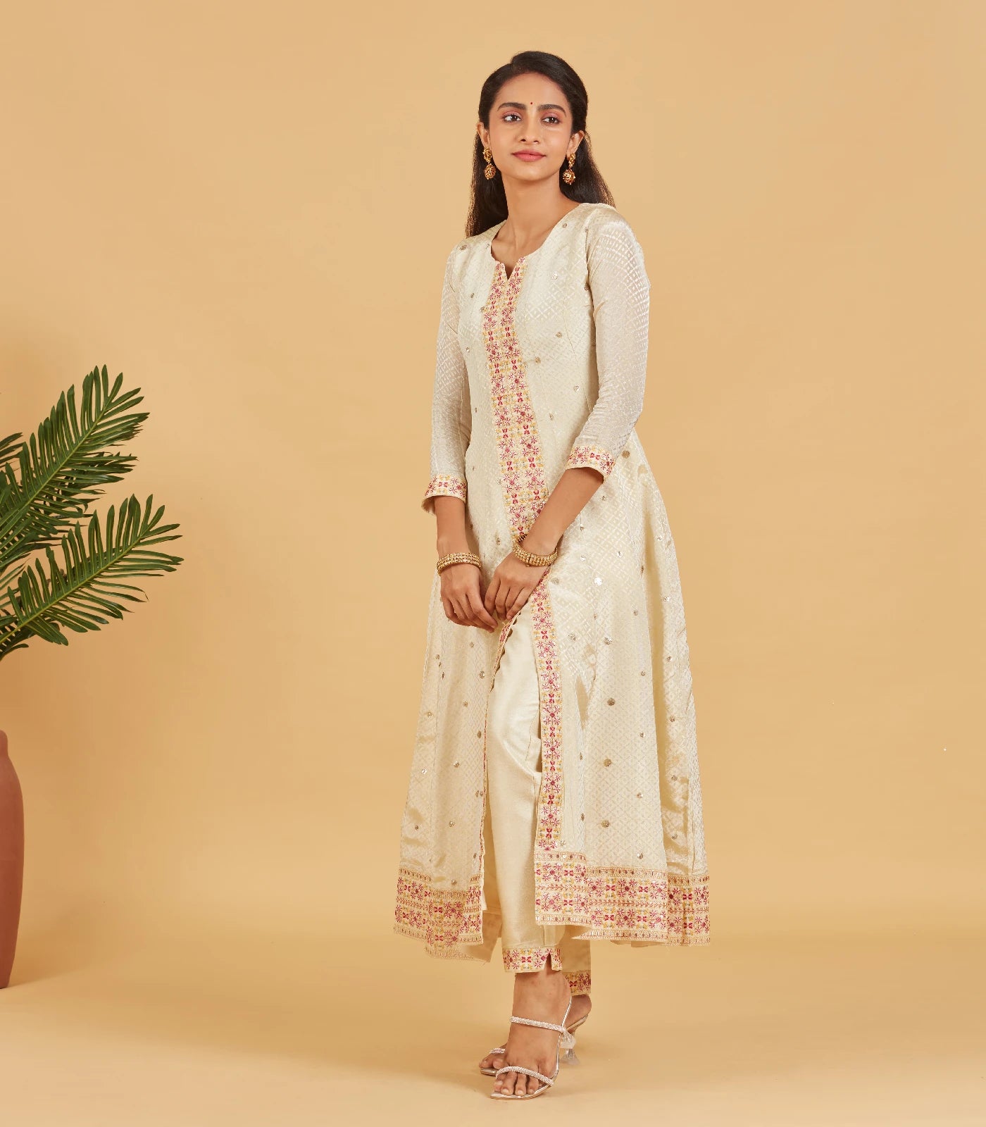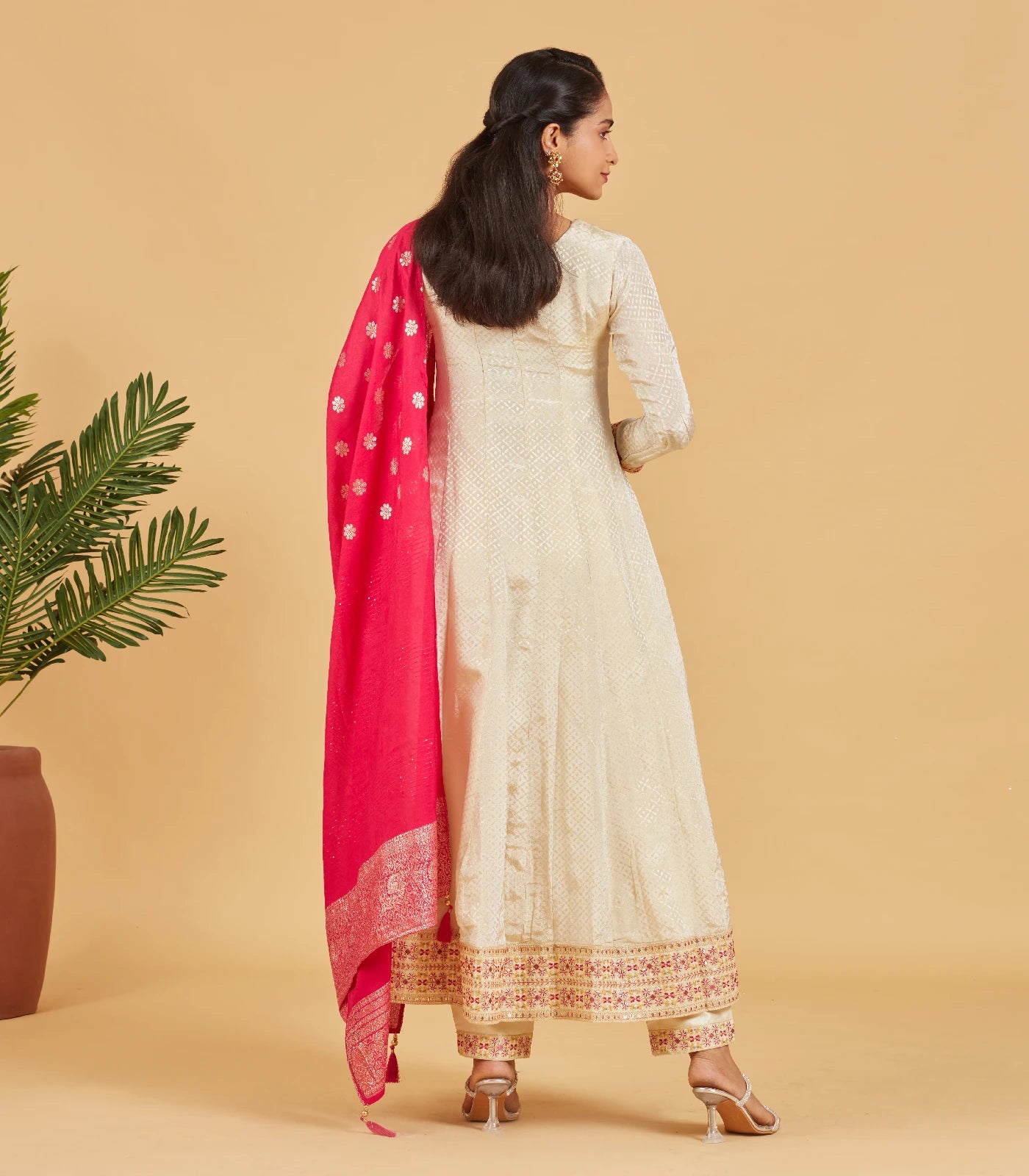 Cream Anarkali Suit With Contrast Fuchsia Pink Dupatta