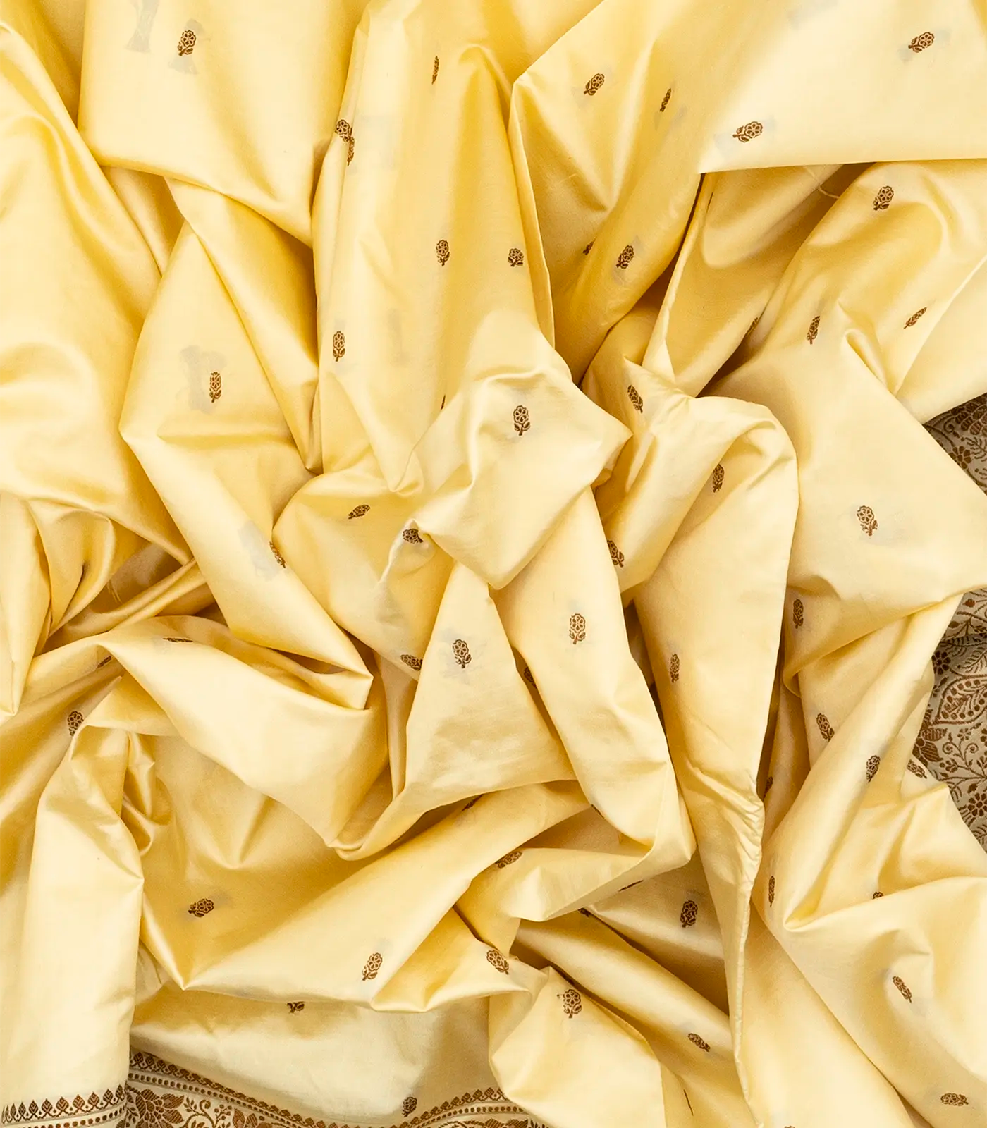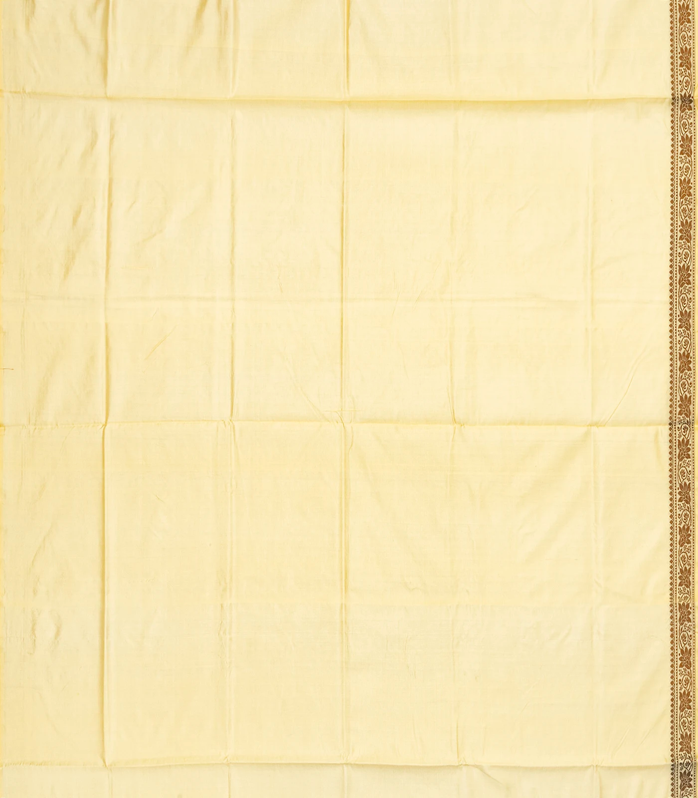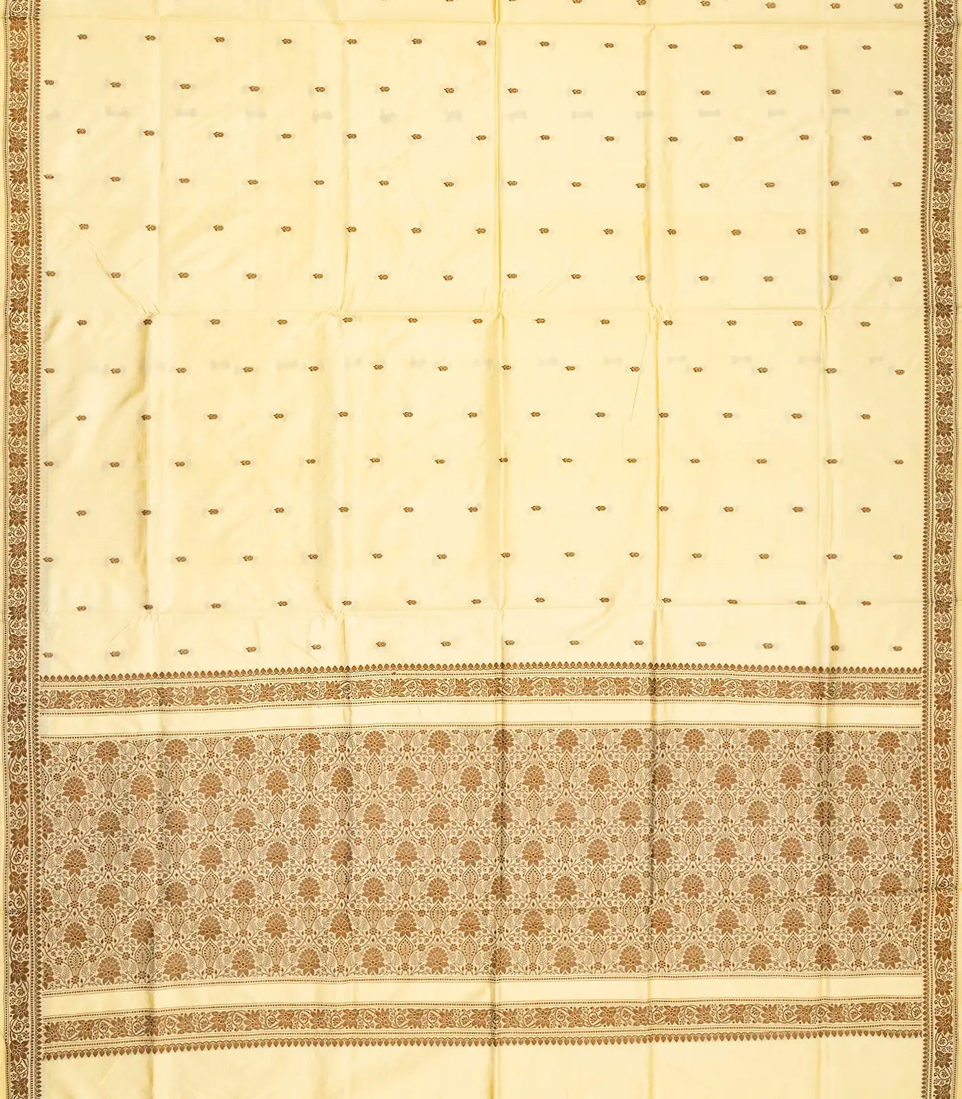 This woven banarasi silk saree is filled with floral motifs in cream body along with border and pallu