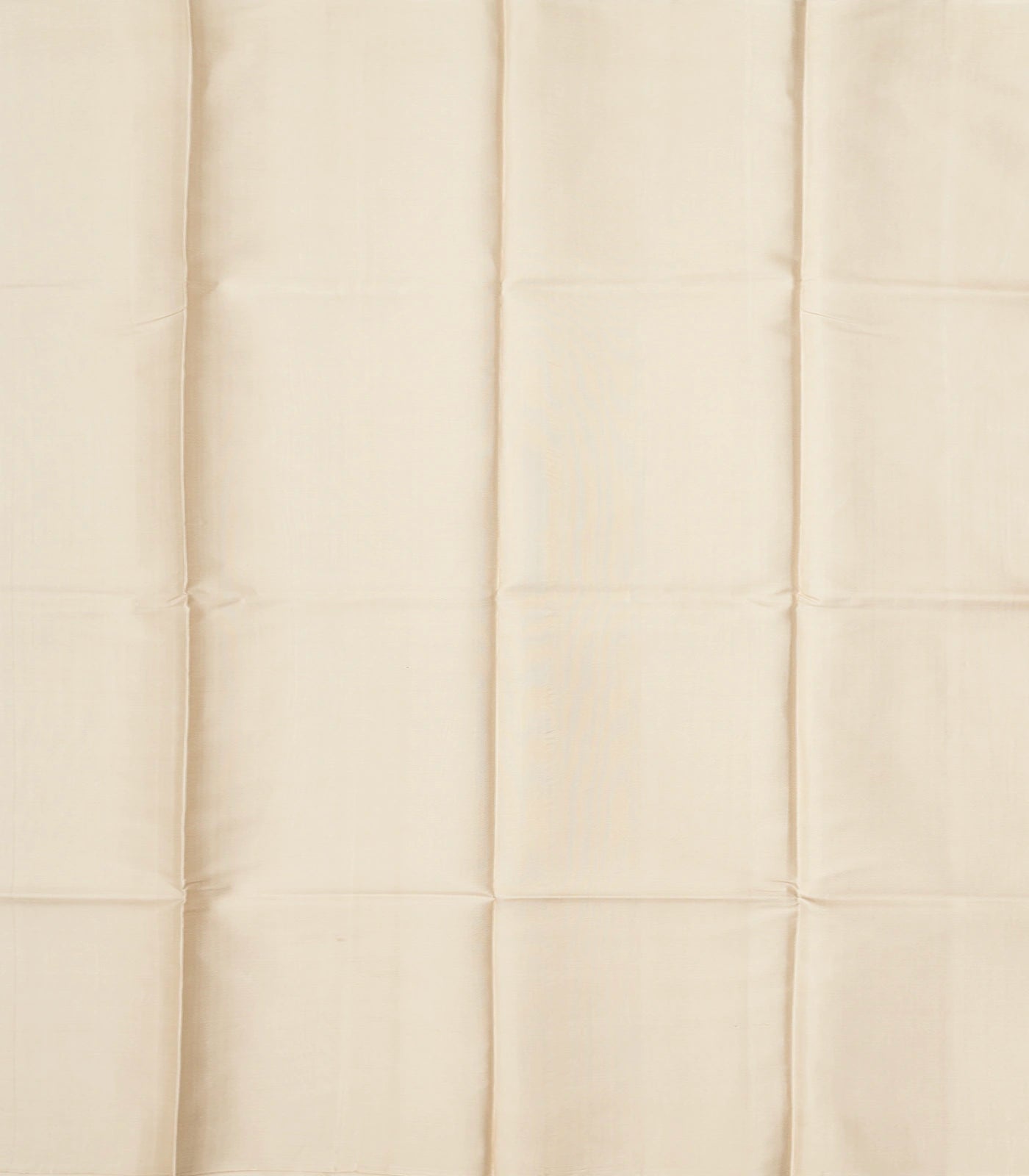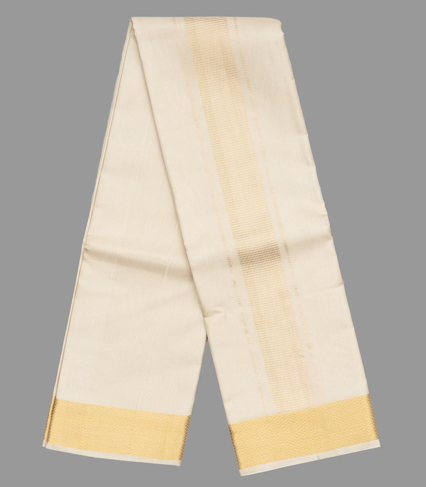 This handwoven silk dhoti with 8 yards and 4 yards angavastram in cream along with matching 2 meter shirt material