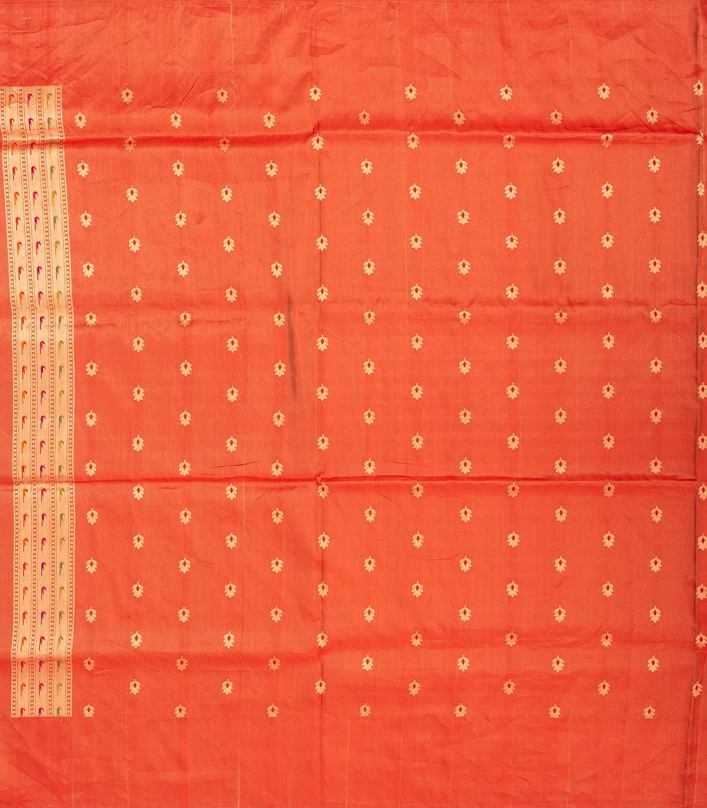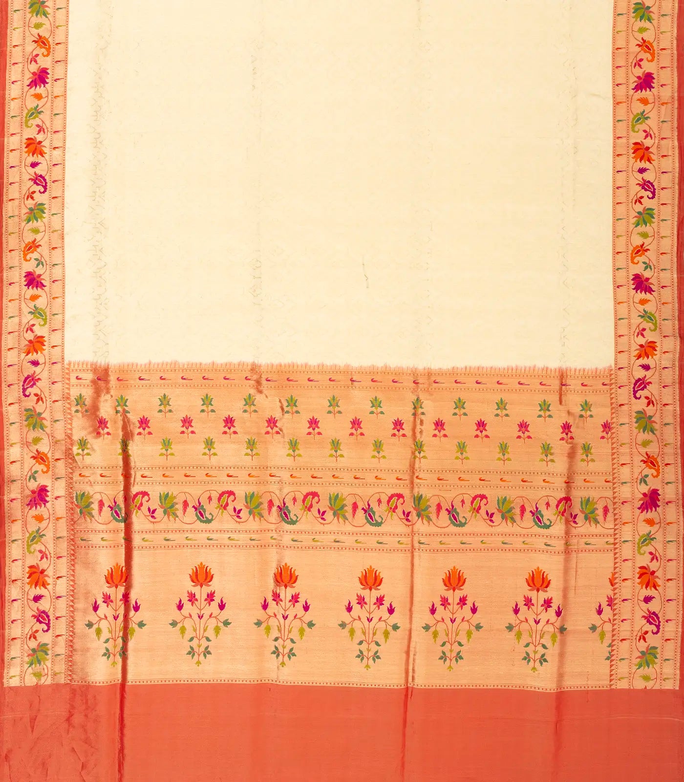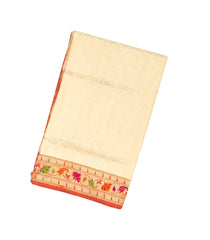 Cream Handloom Banarasi Silk Saree With Floral Motifs & Meena Border-BE1331