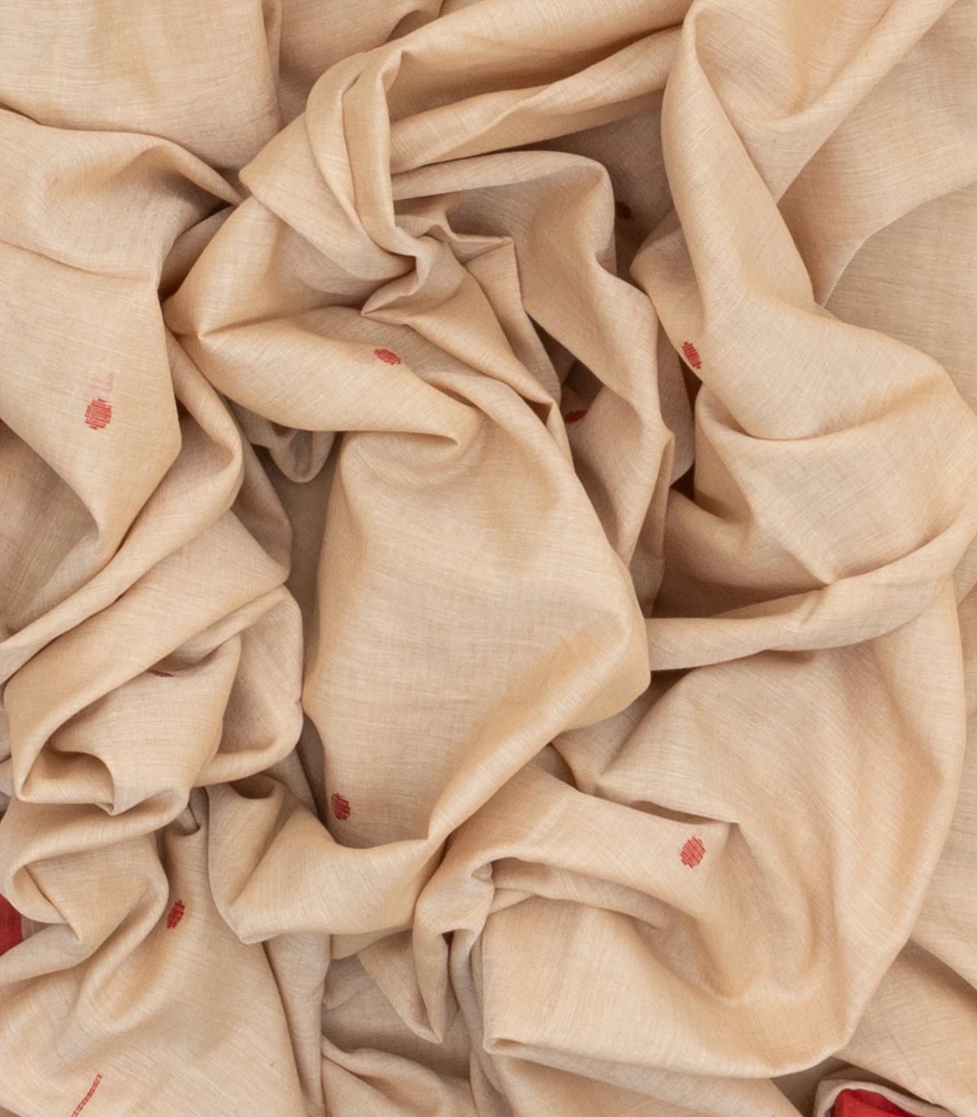 Cream Handloom Bengal Cotton Saree With Coin Buttas-BG1200