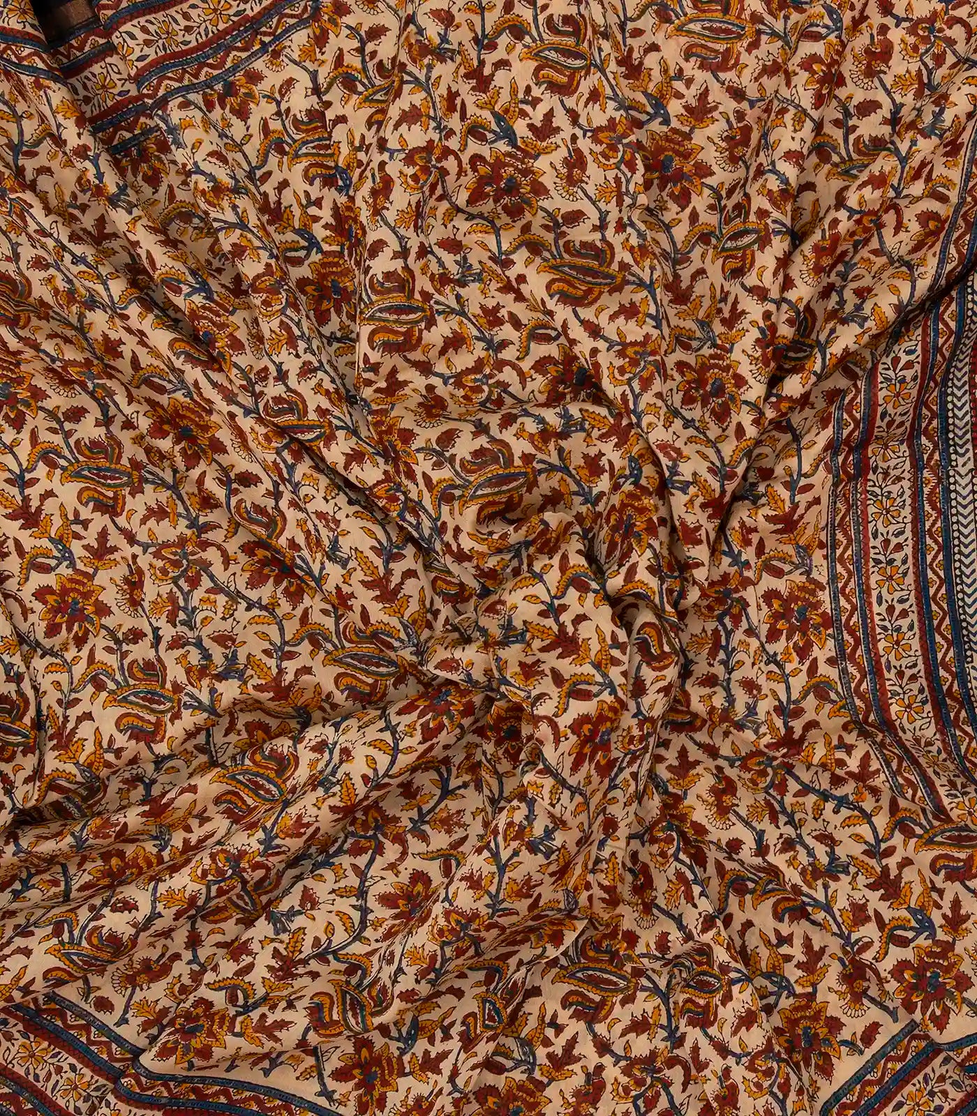 Cream Handloom Chanderi Cotton Saree With Printed Floral Motif