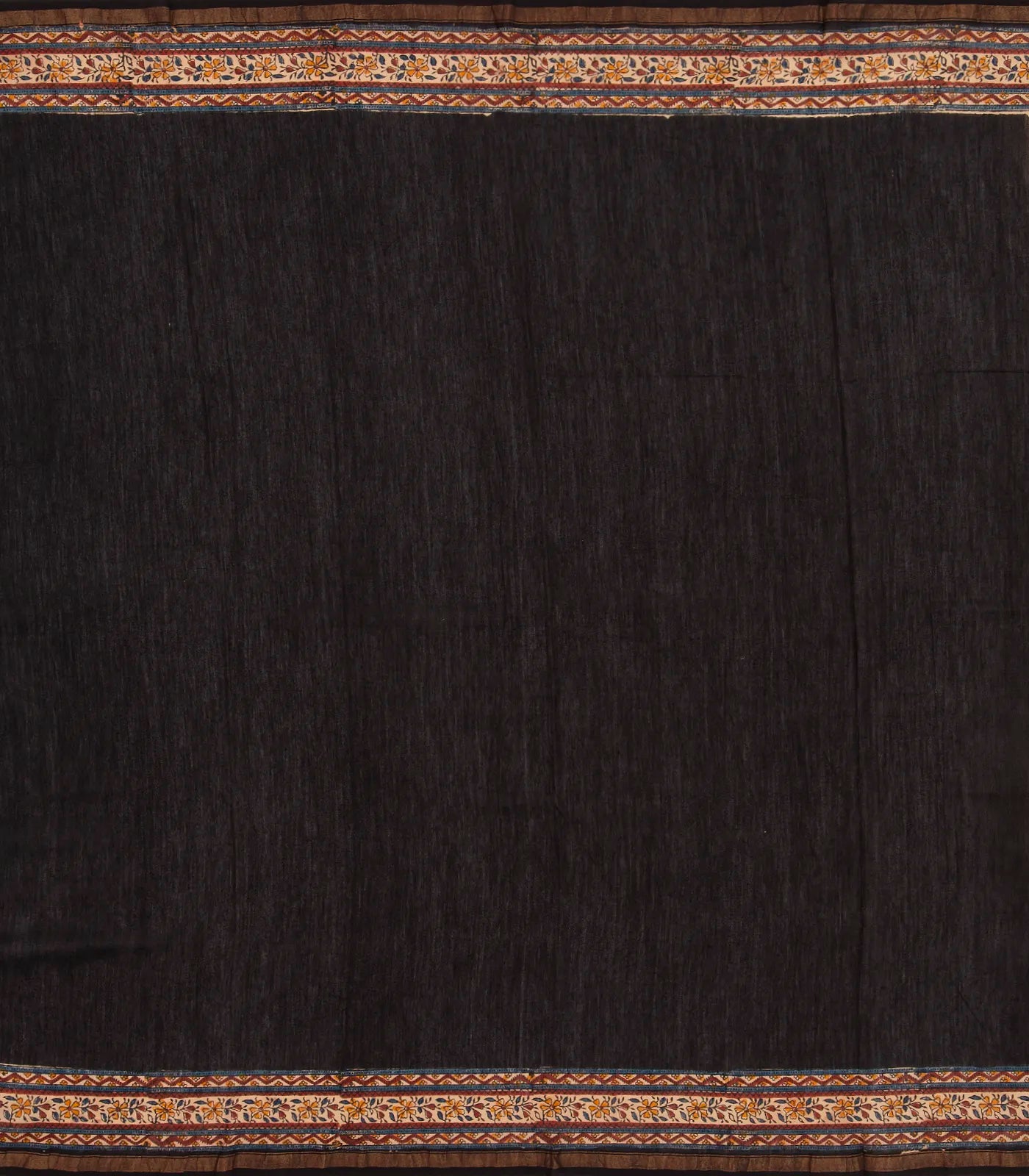 This handwoven chanderi cotton saree is printed with floral motifs in cream body along with black border and pallu