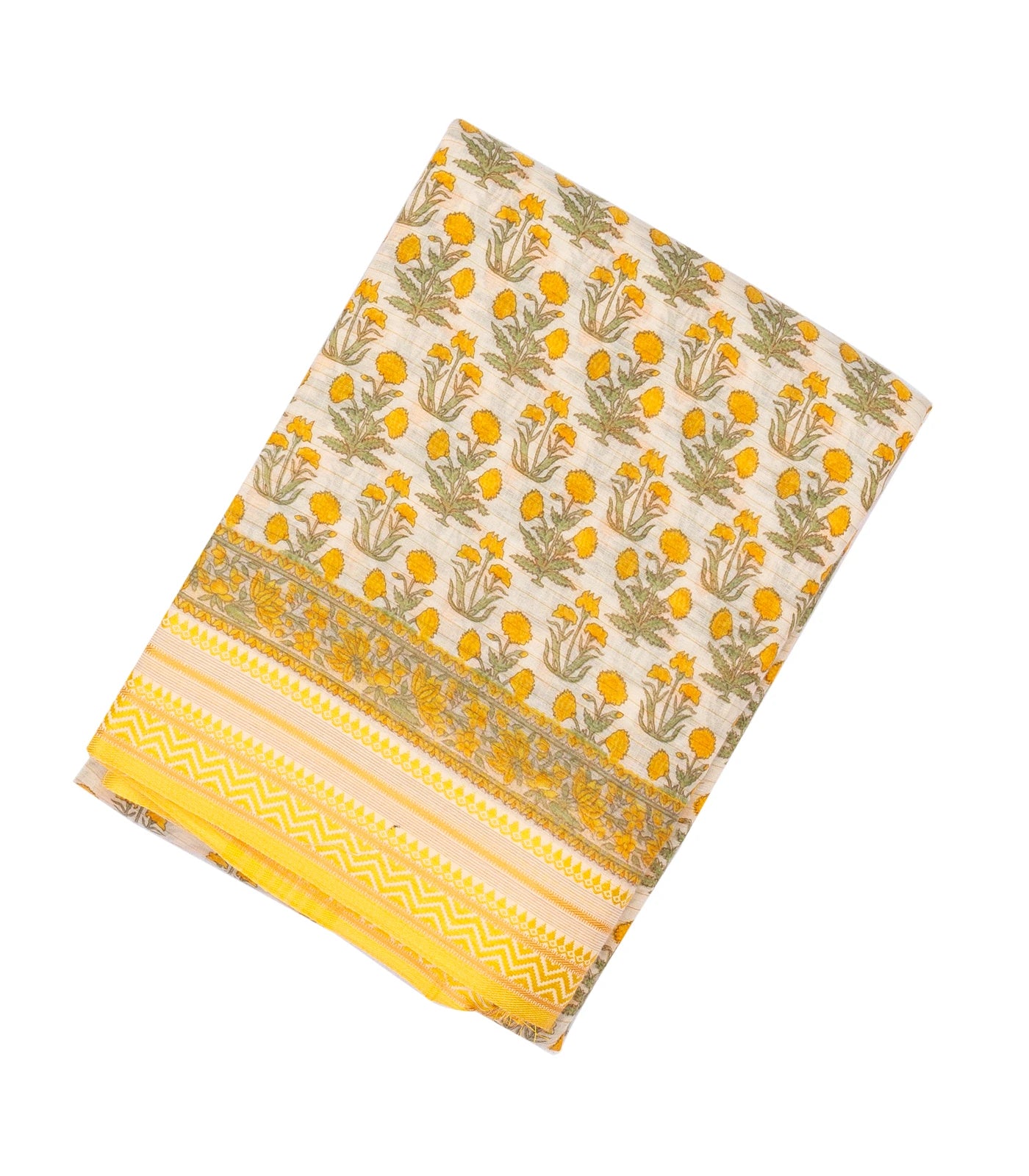 Cream Handloom Chanderi Cotton Saree With Printed Yellow Floral Motif