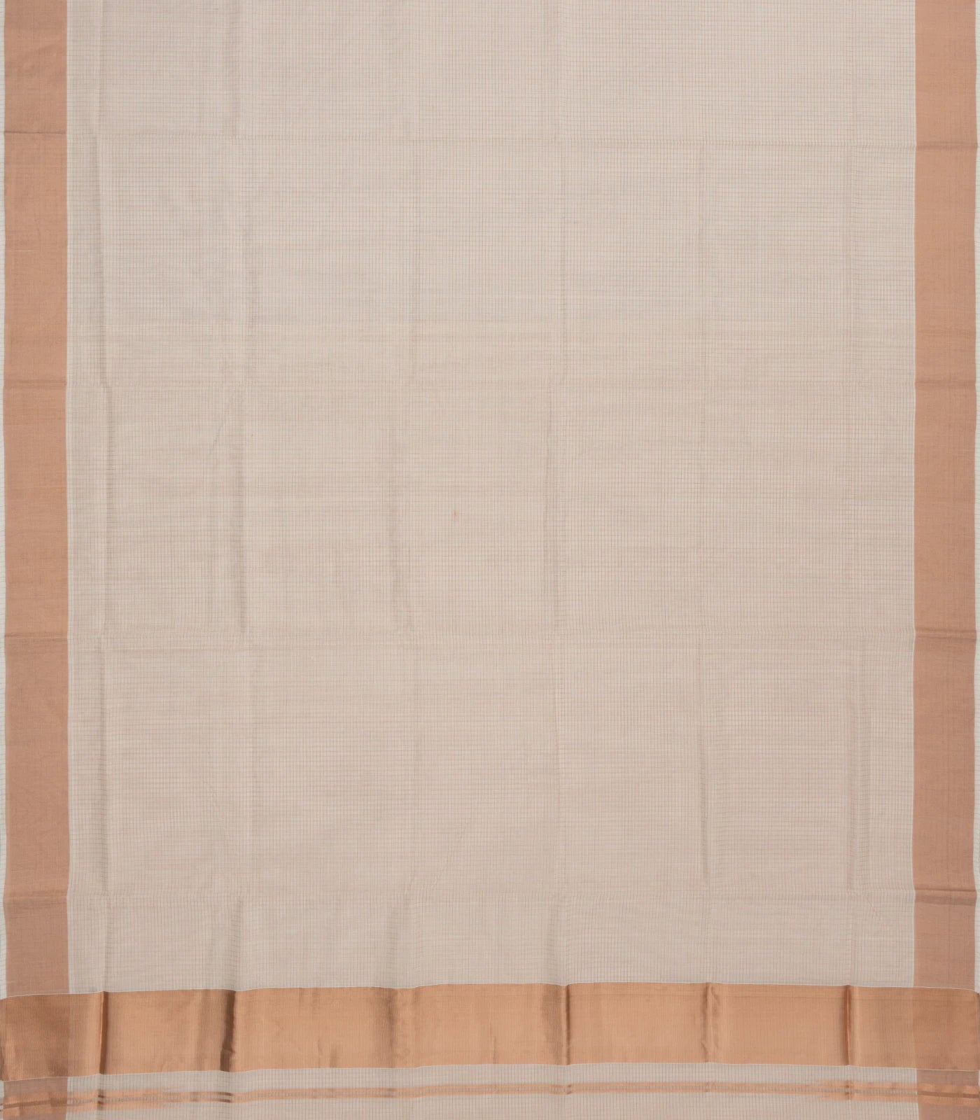 Cream Handloom Kerala Cotton Saree With Checks & Zari Border-KEC1060