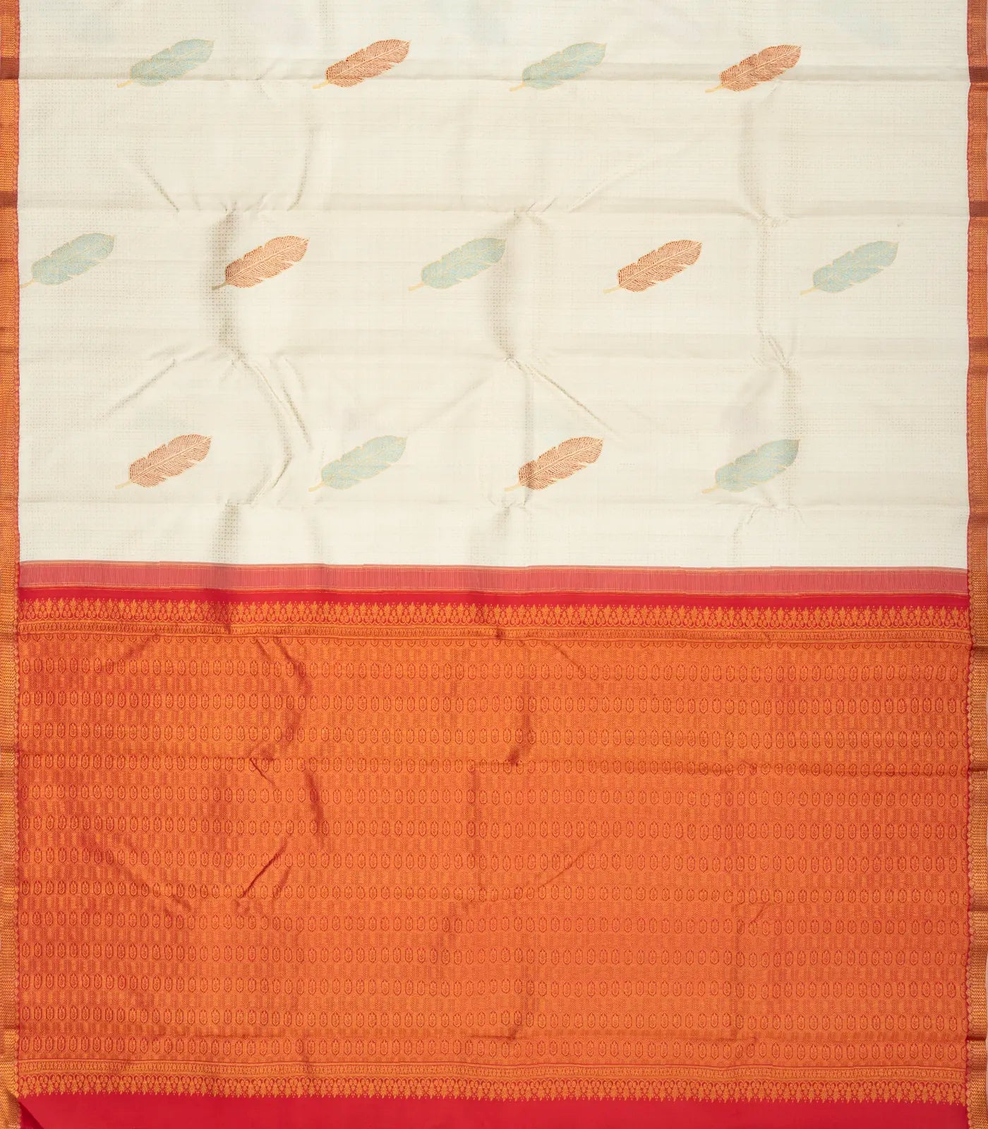 Cream Handloom Korvai Kanchipuram Silk Saree With Dotted Checks & Buttas-KA13194
