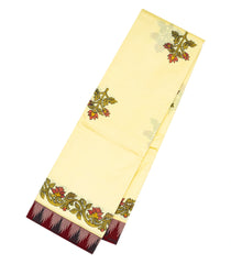 Cream Handwoven Korvai Silk Saree With Hand painted Meena Floral Motifs