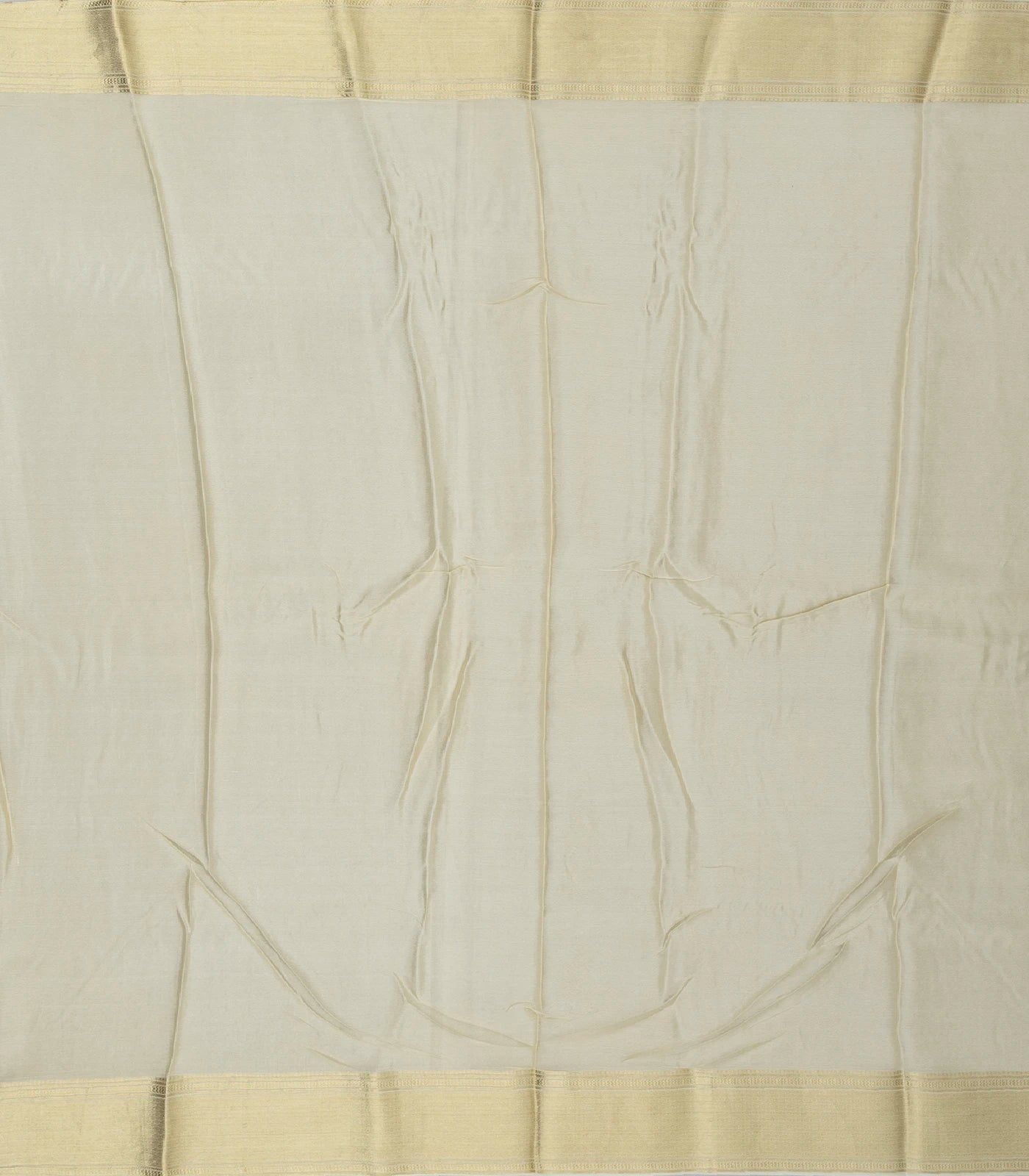 Cream Mysore Crepe Silk Saree With Peacock Floral Motifs-MS3105