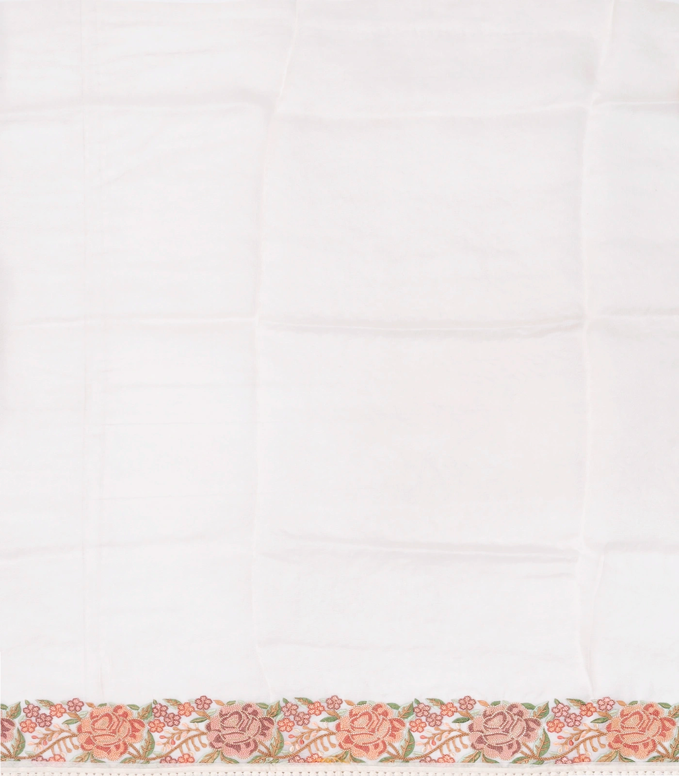 This woven pure organza silk saree is filled with embroidered floral motifs in cream body along with meena embroidered motifs in border and pallu