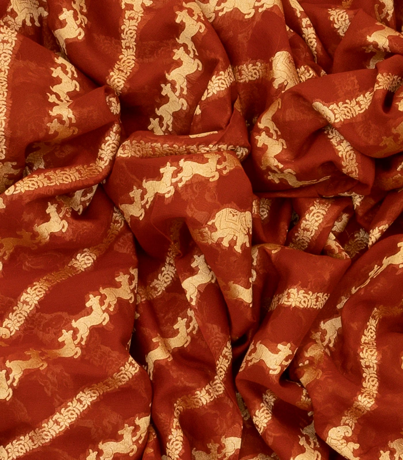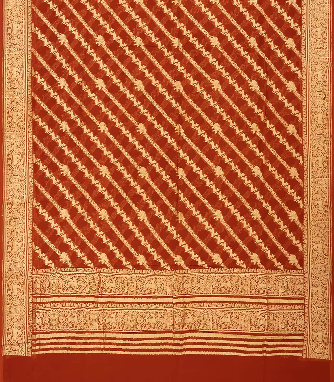 Crimson Banarasi Khaddi Georgette Saree With Diagonal Stripes-Crimson