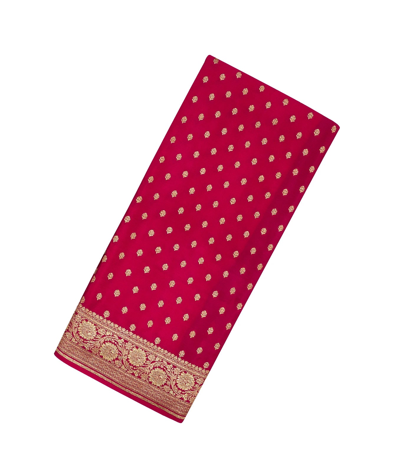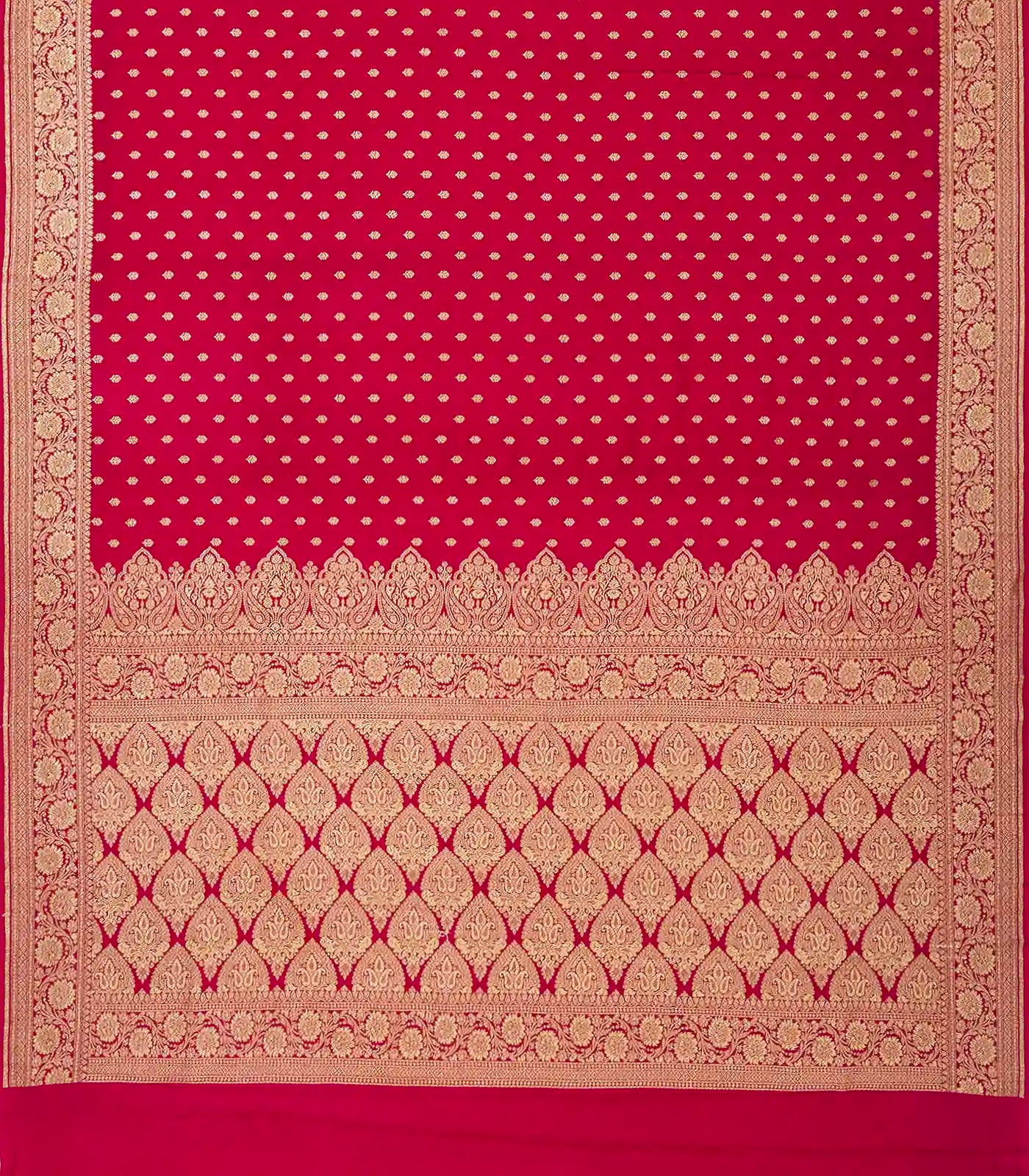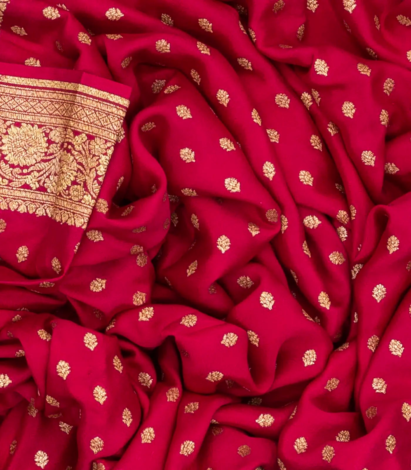 Crimson Handloom Banarasi Khadi Georgette Saree With Floral Motifs-BE1275