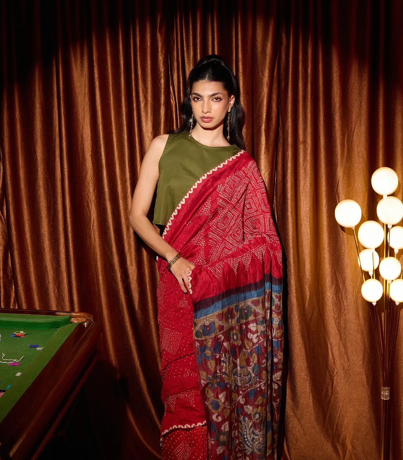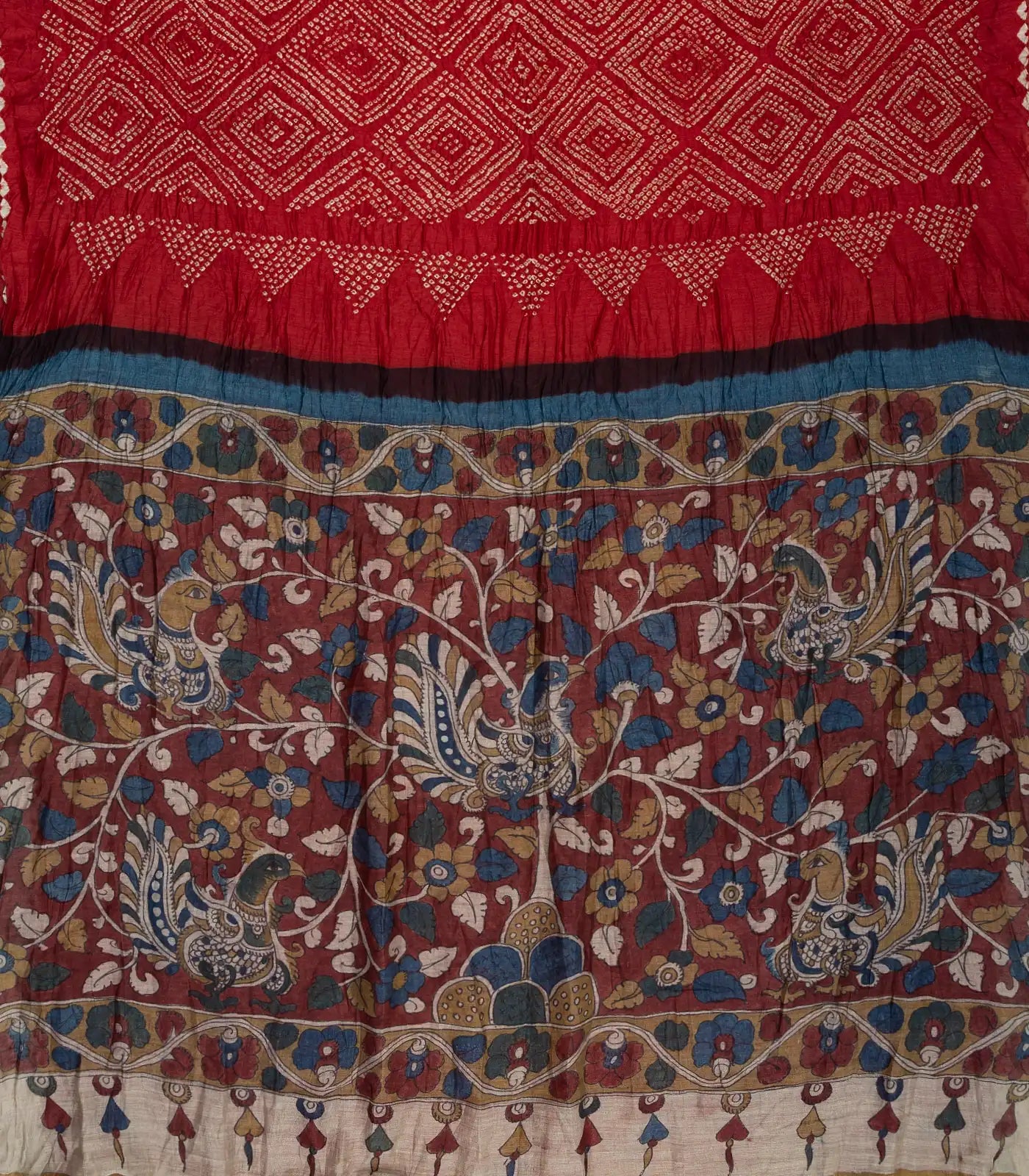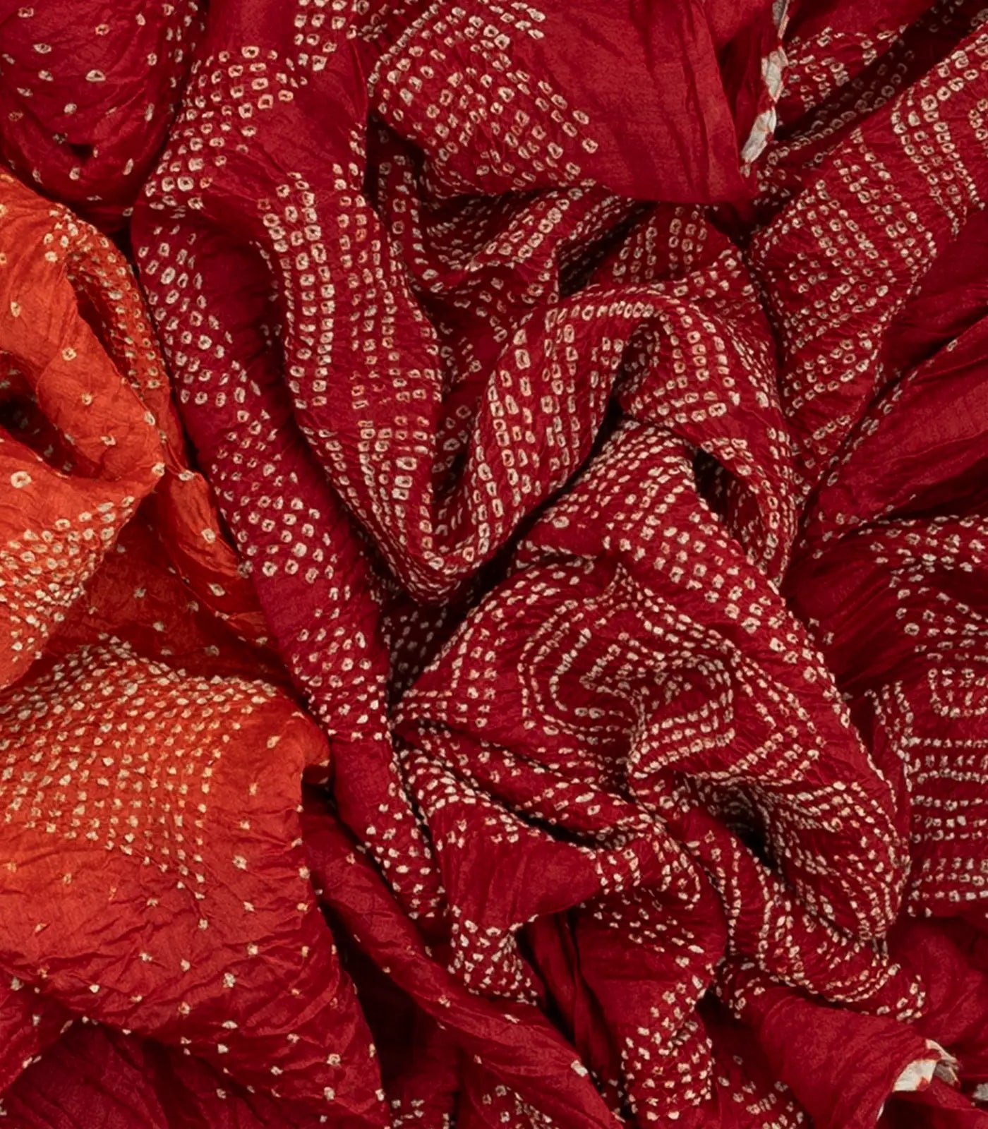 Crimson Handloom Bandhej Tussar Silk Saree With Tie & Dye Motifs -TU3034