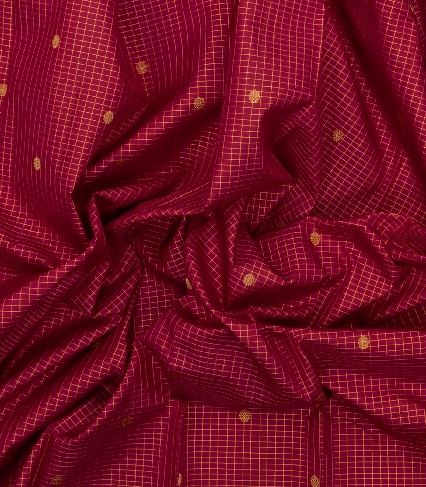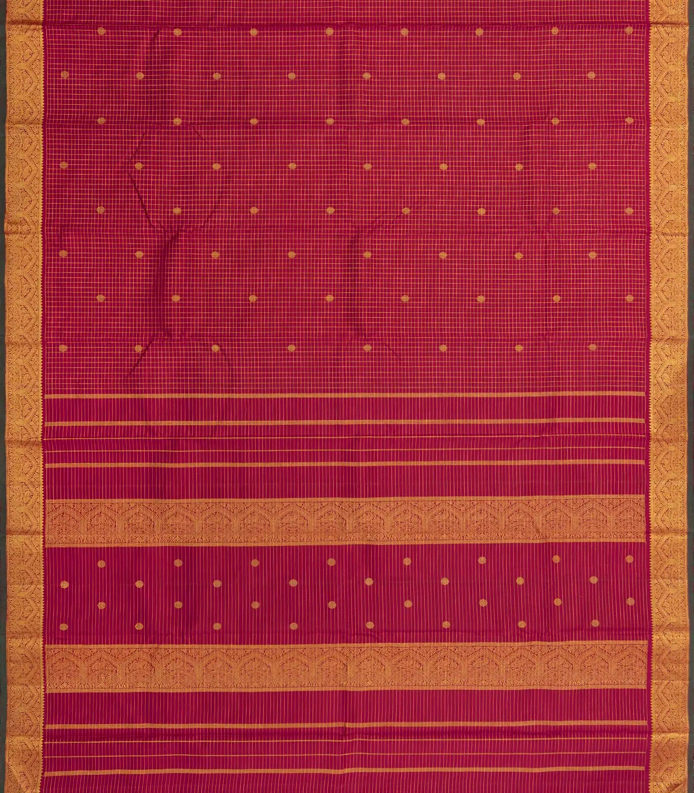 Crimson Handloom Kanchipuram Silk Saree With Checks & Buttas-KA14705