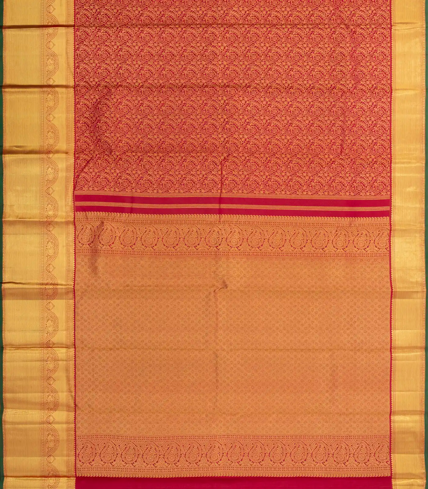 Crimson Handloom Kanchipuram Silk Saree With Floral Vine Motifs-KA14775
