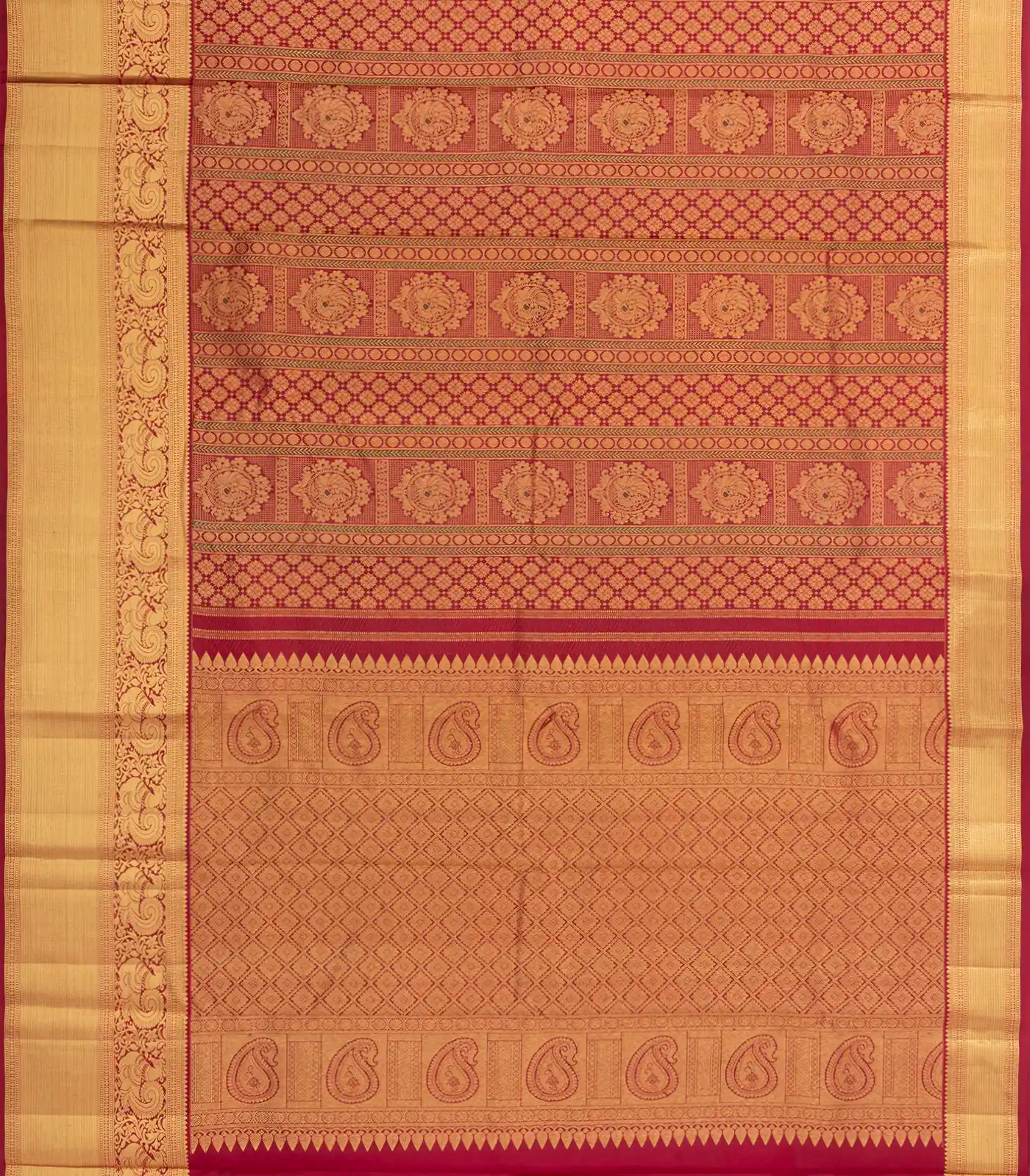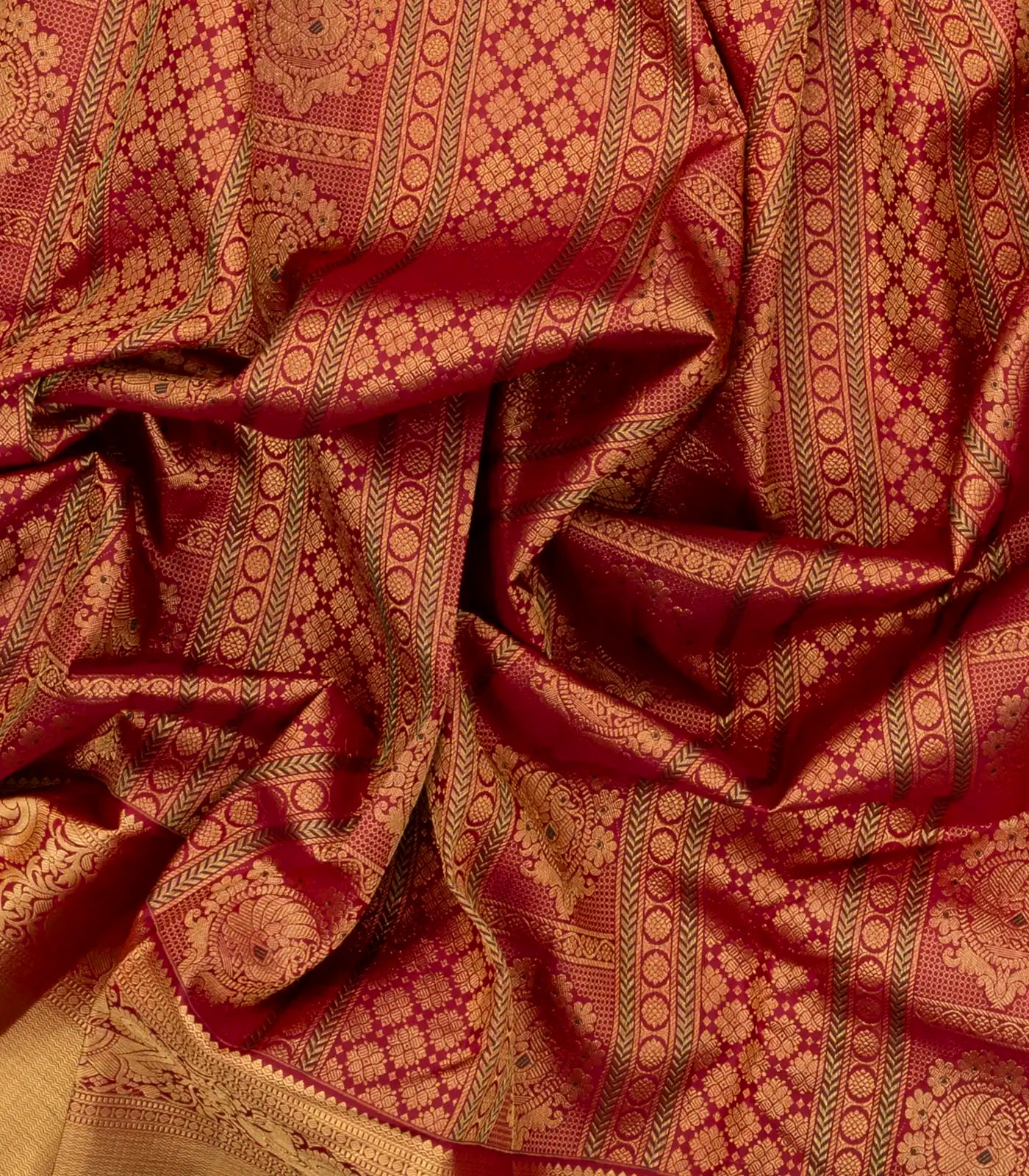Crimson Handloom Kanchipuram Silk Saree With Meena Annam Motifs-KA14786