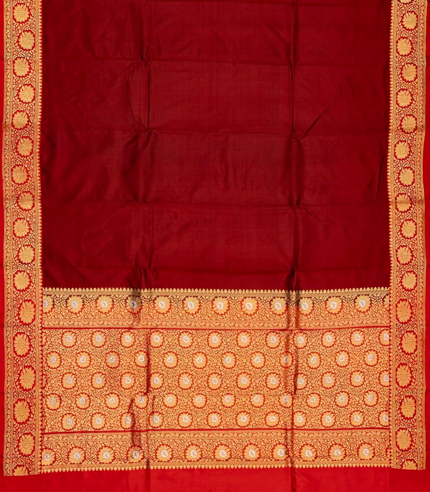 Crimson Handloom Plain Banarasi Silk Saree With Red Border