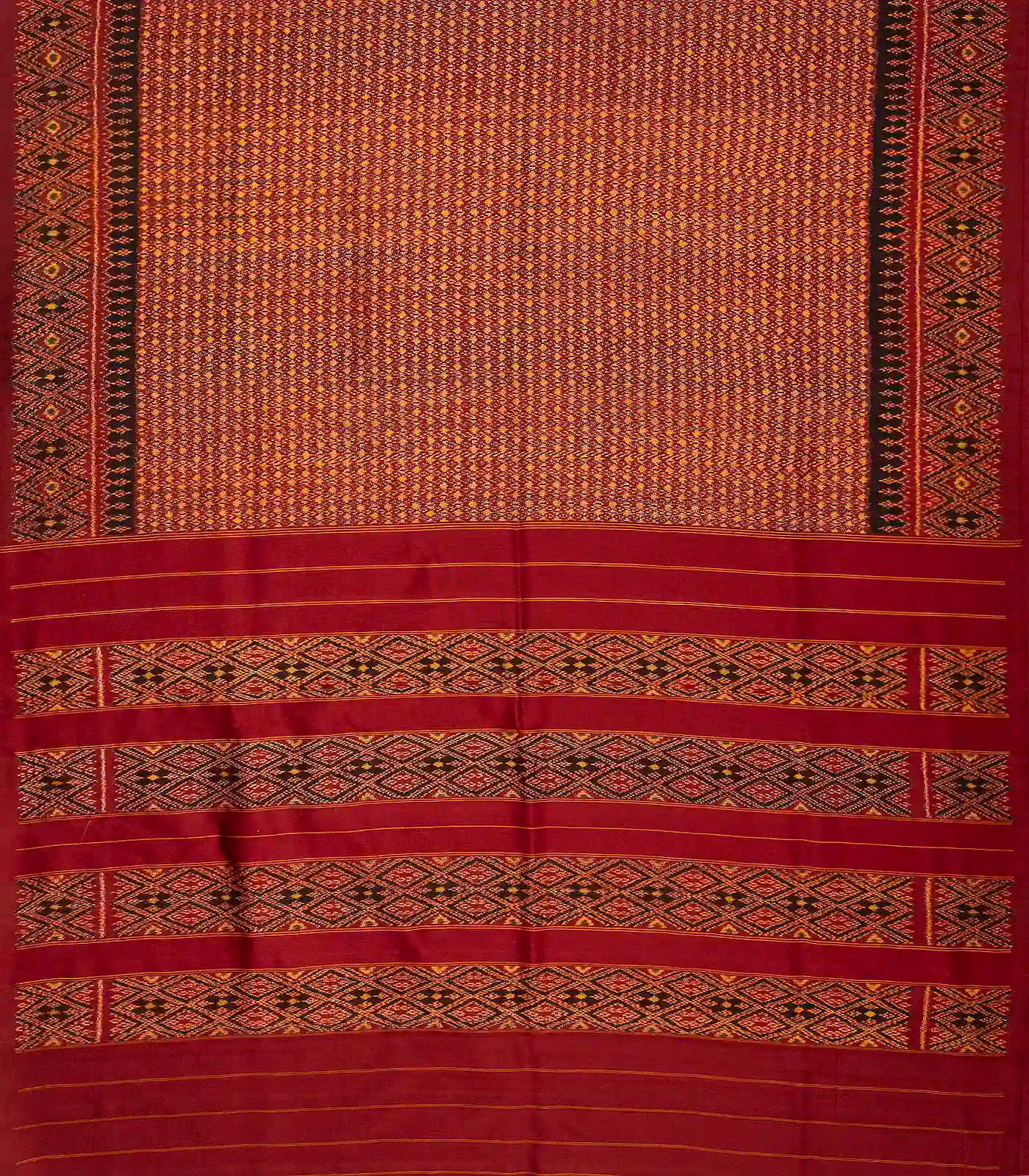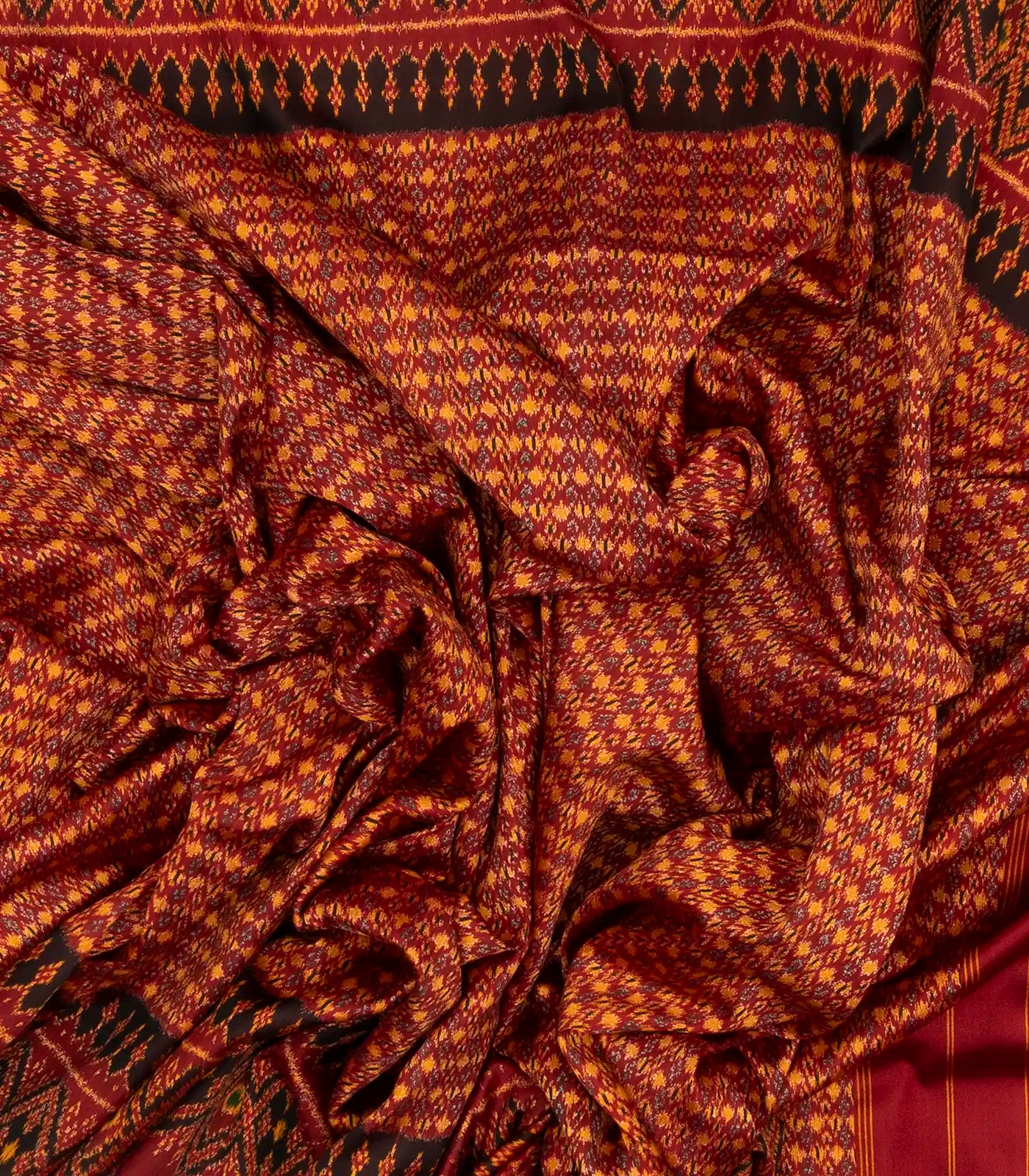 Crimson Handloom Pochampally Ikat Silk Saree With Tie & Dye Floral Motifs-IK0396