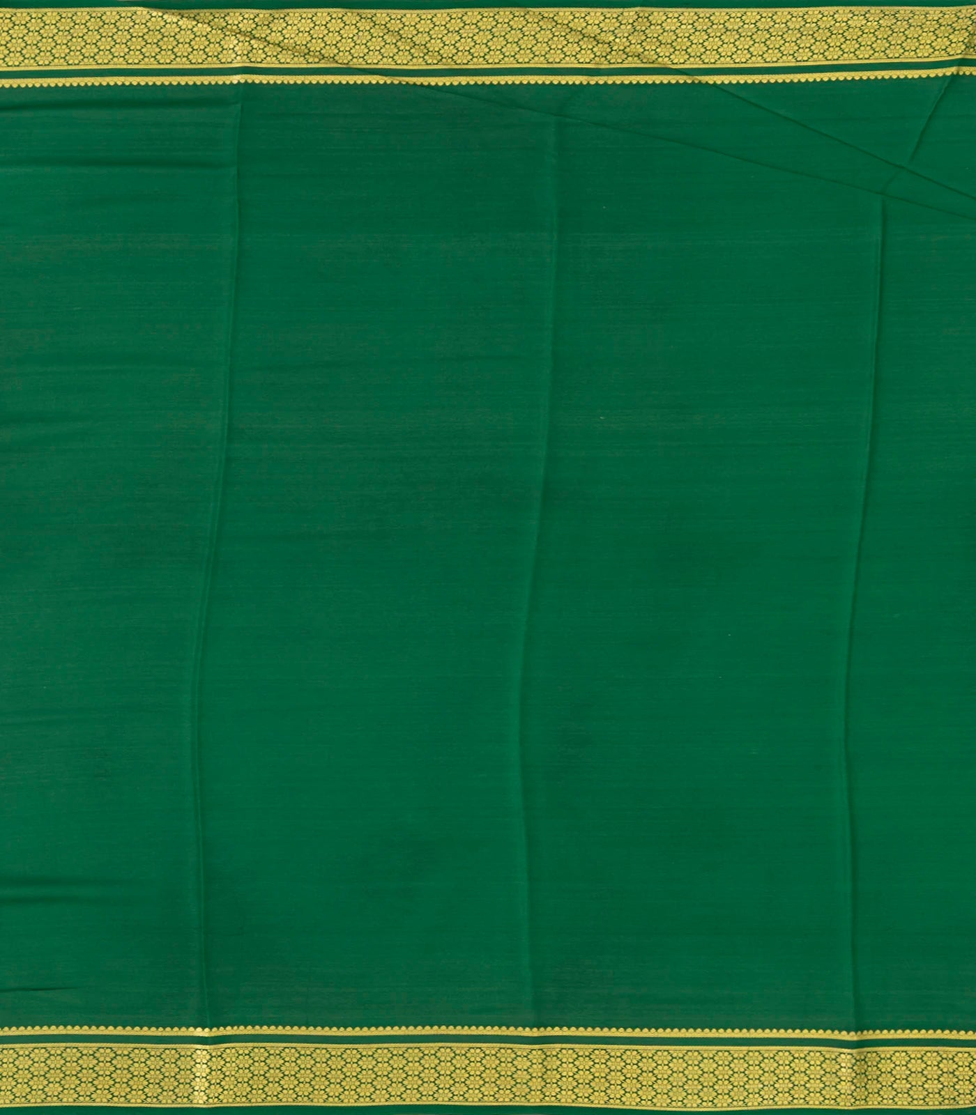 This woven mysore crepe silk saree is filled with plain crimson body along with contrast border and pallu