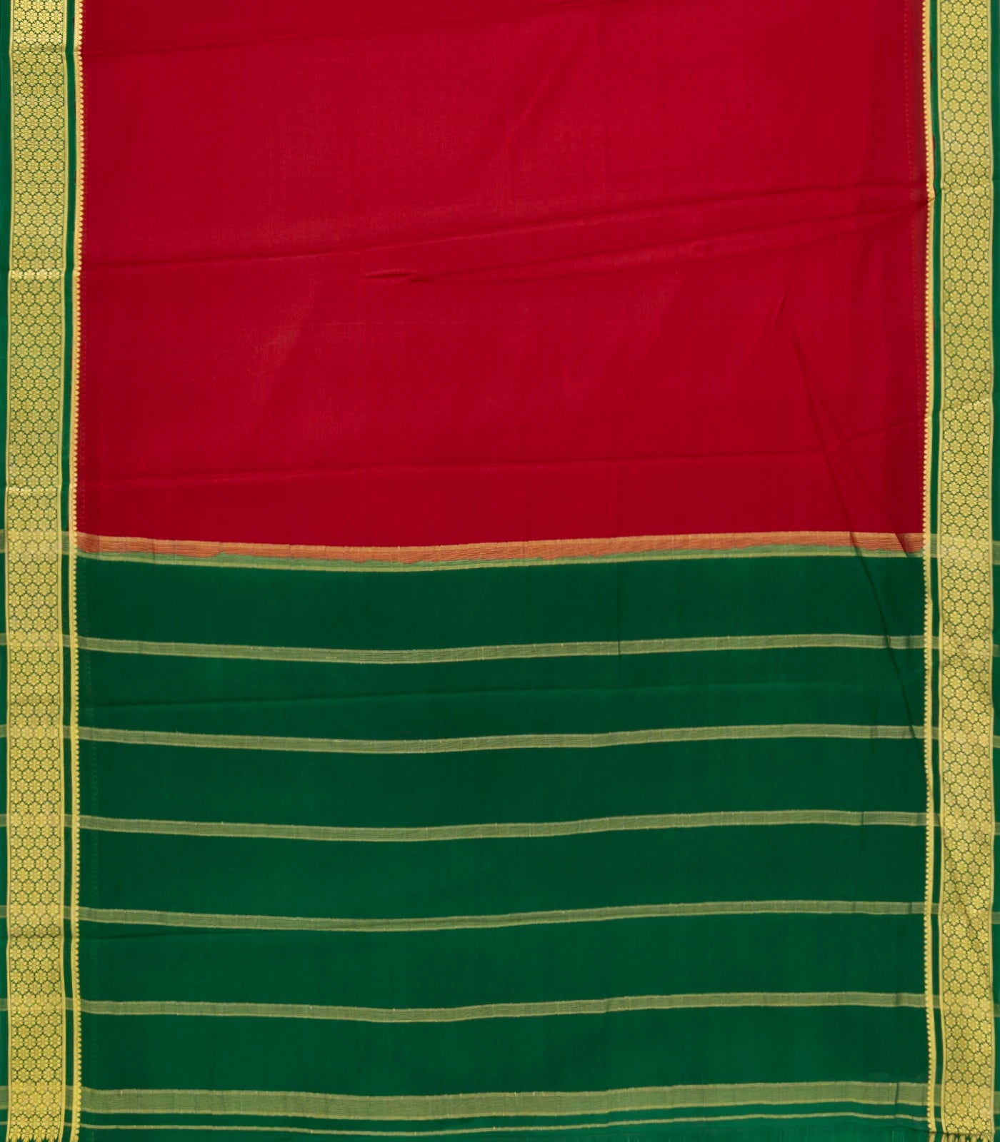 Crimson Woven Mysore Crepe 9 Yards Silk Saree With Contrast Border-MS3199