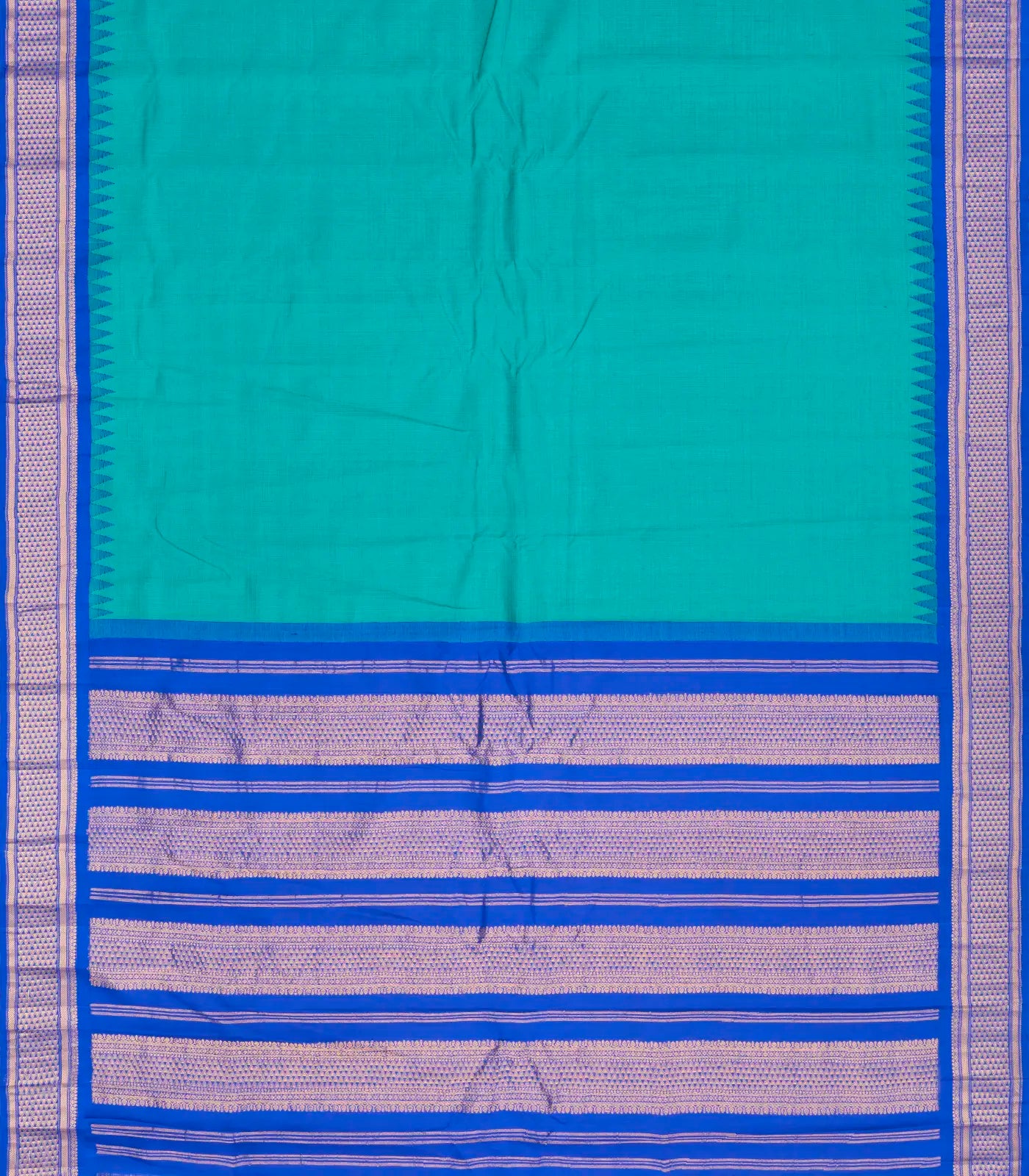 Cyan Handloom Gadwal Cotton Saree With Checks & Contrast Border-GA0256