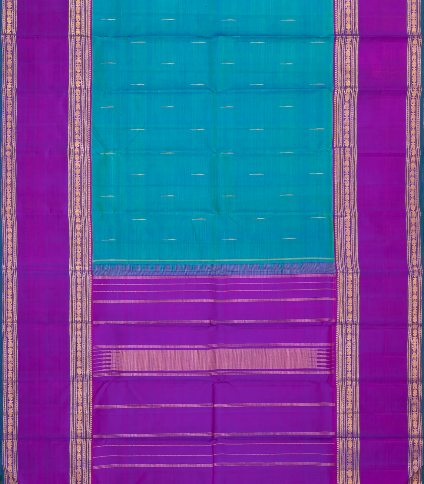 Cyan Handloom Kanchipuram Silk Saree With Jasmine Bud Buttas-KA13467
