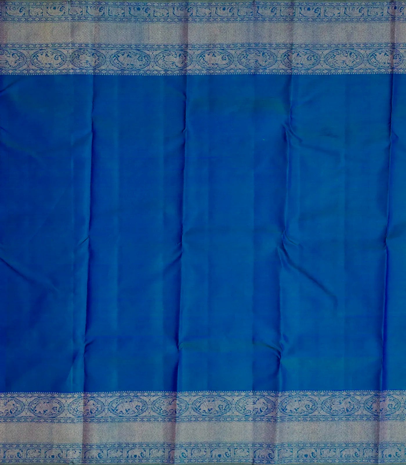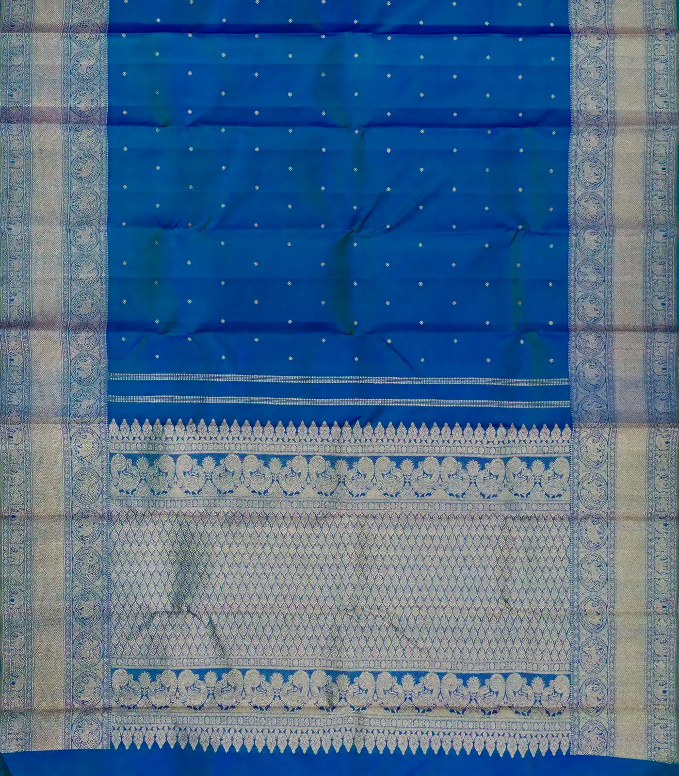 Cyan Handloom Kanchipuram Silk Saree With Kamalam Buttas-KA12382