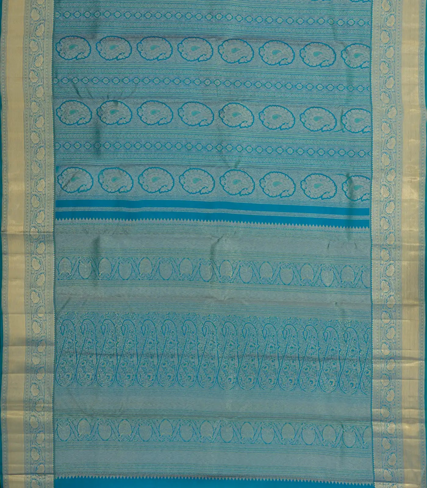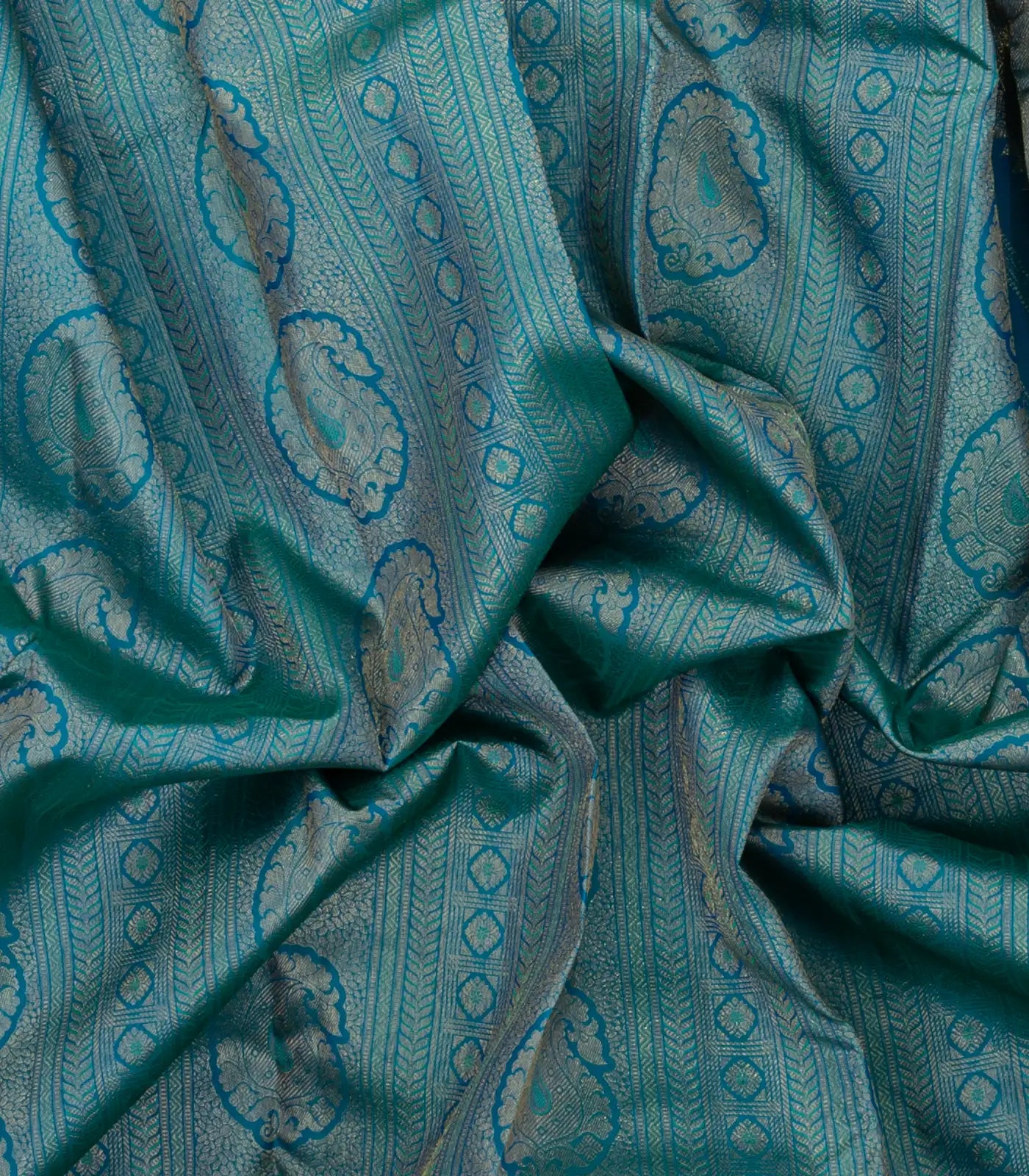 Cyan Handloom Kanchipuram Silk Saree With Meena Floral Motifs-KA14784