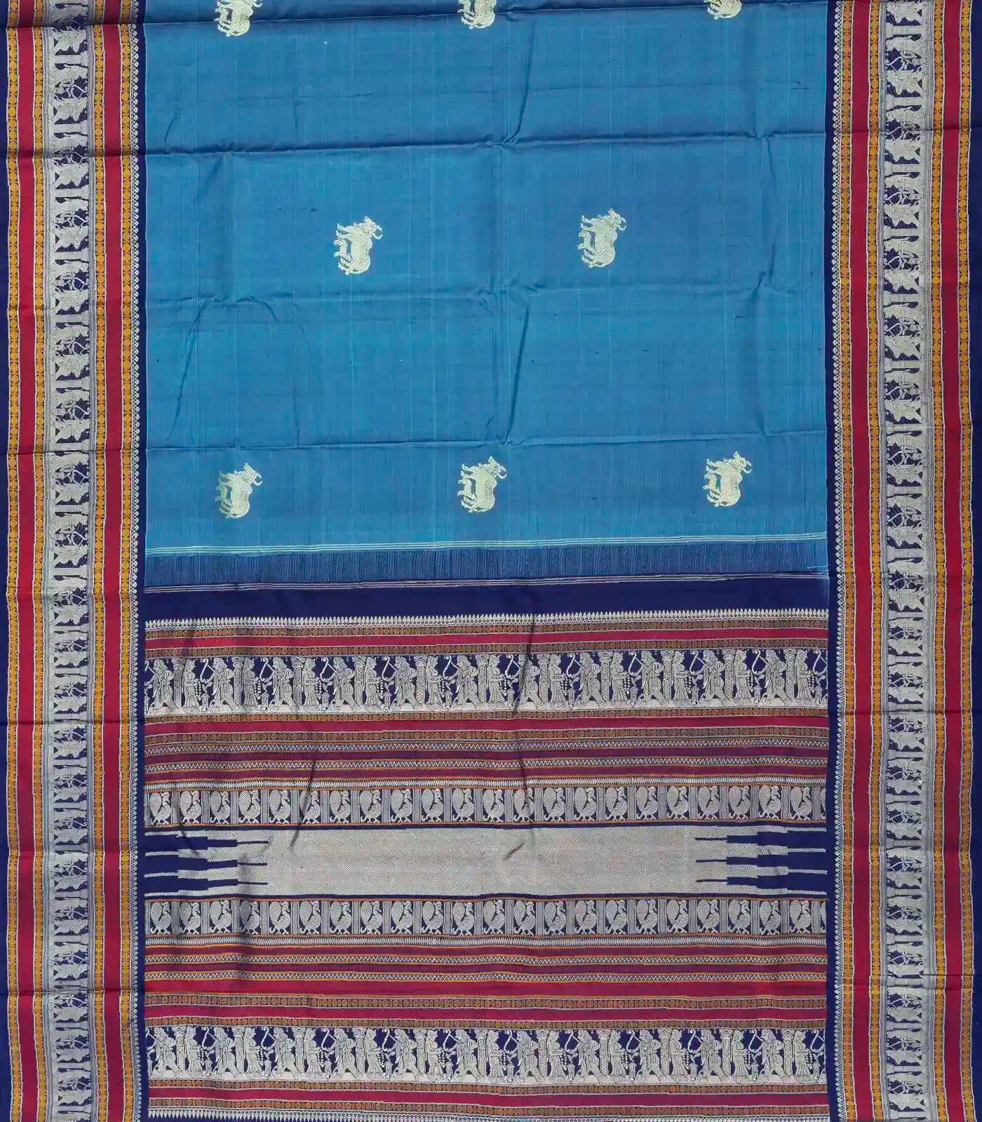 Cyan Handloom Kanchipuram Silk Saree With Ox Buttas-KA12115