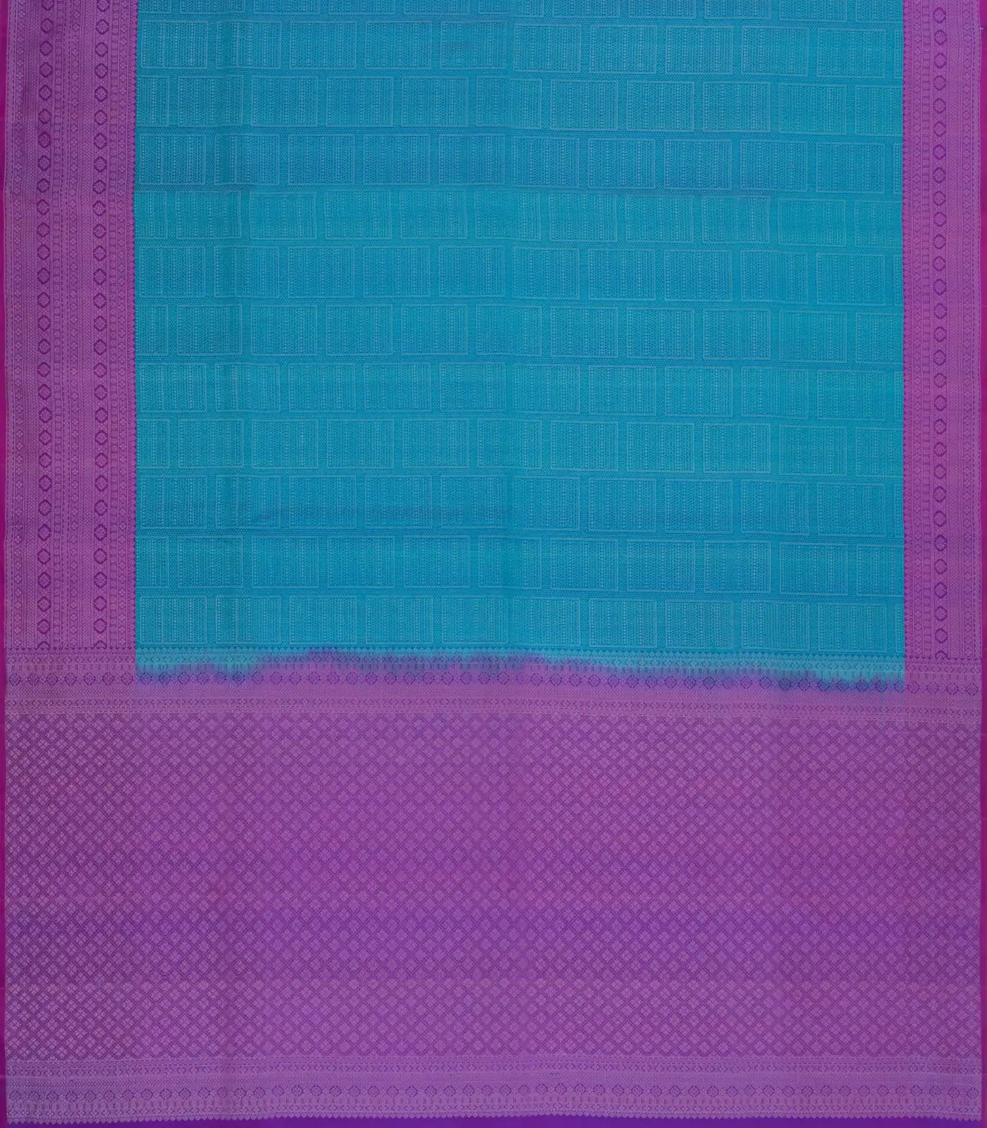 Cyan Handloom Soft Silk Saree With Small Motifs & Purple Border-SO4620