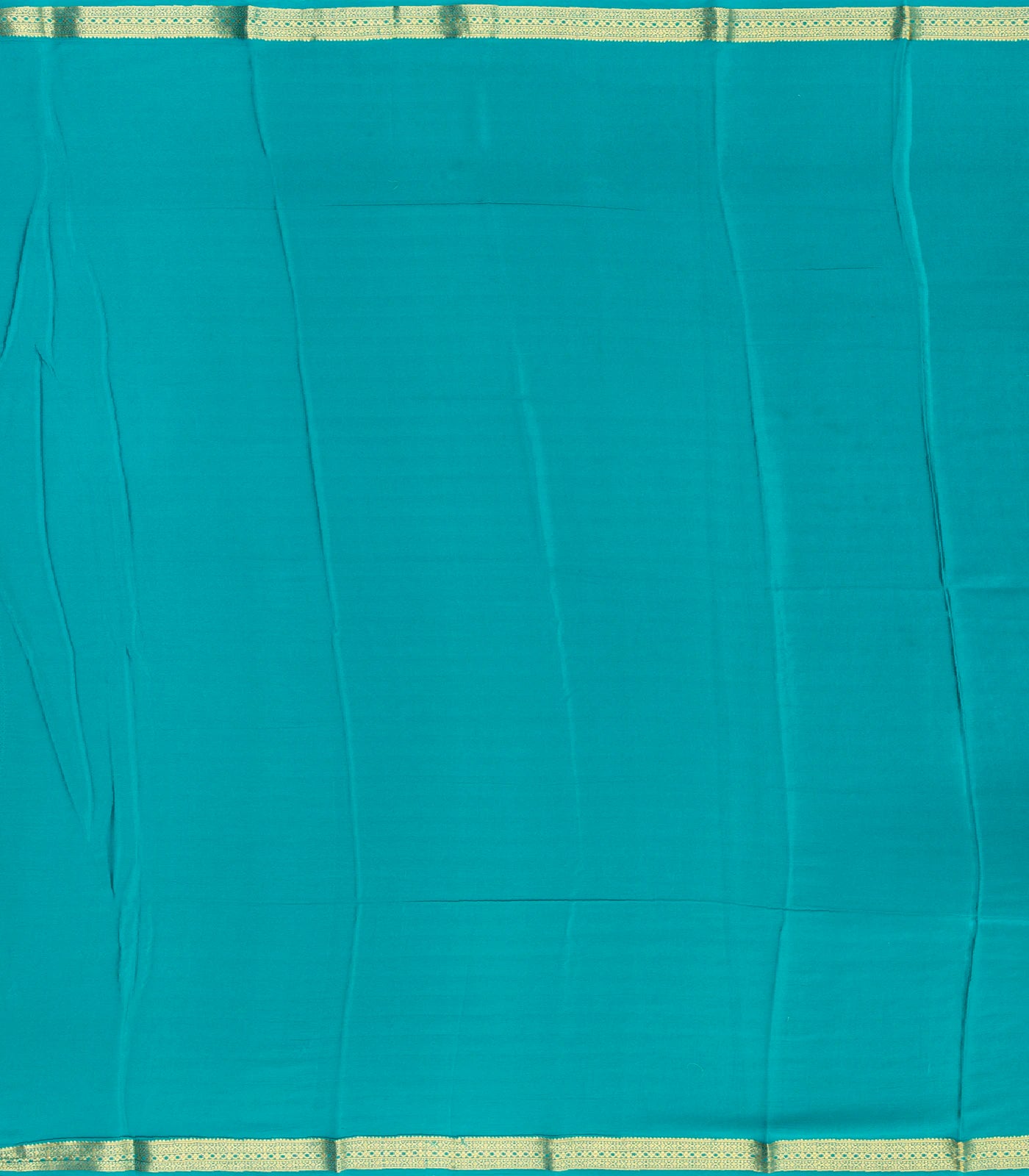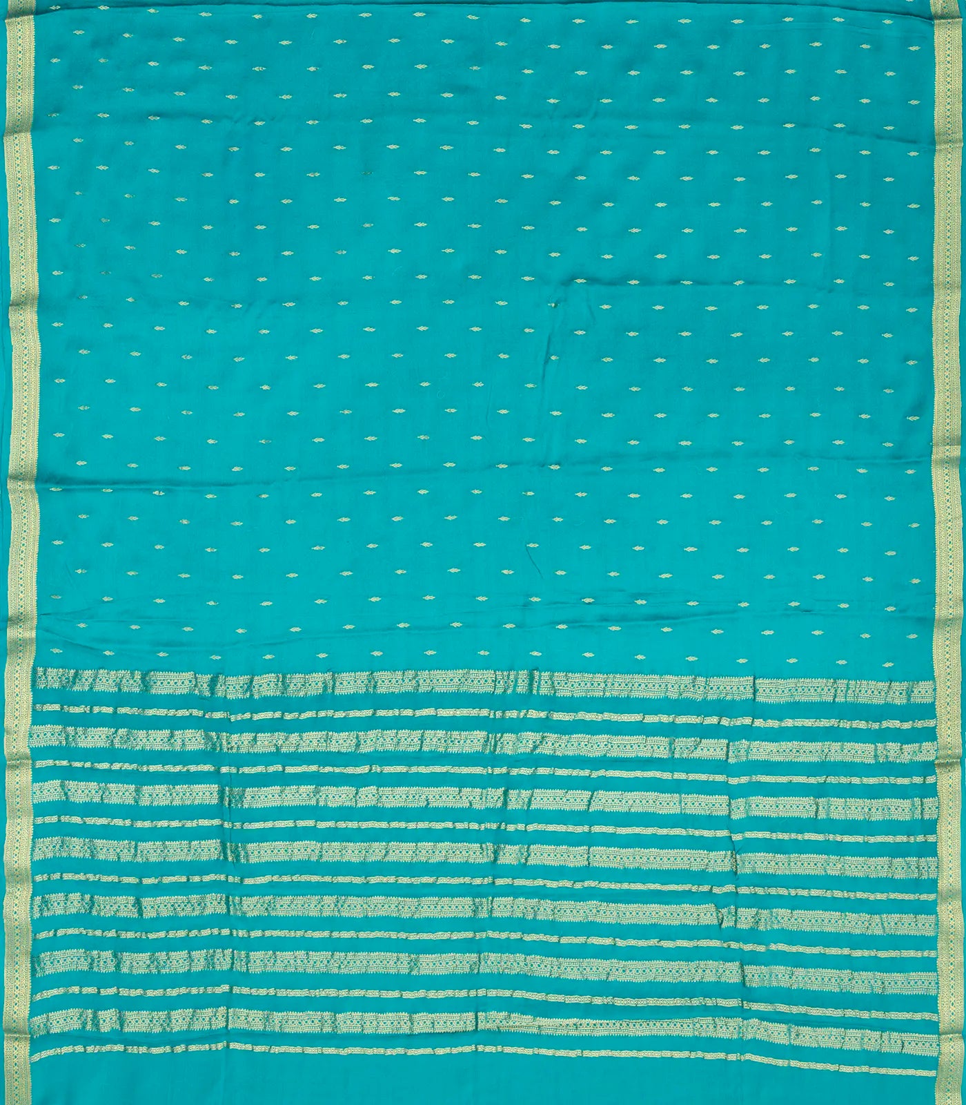 This woven mysore silk saree is filled with floral buttas in cyan body along with zari border and pallu