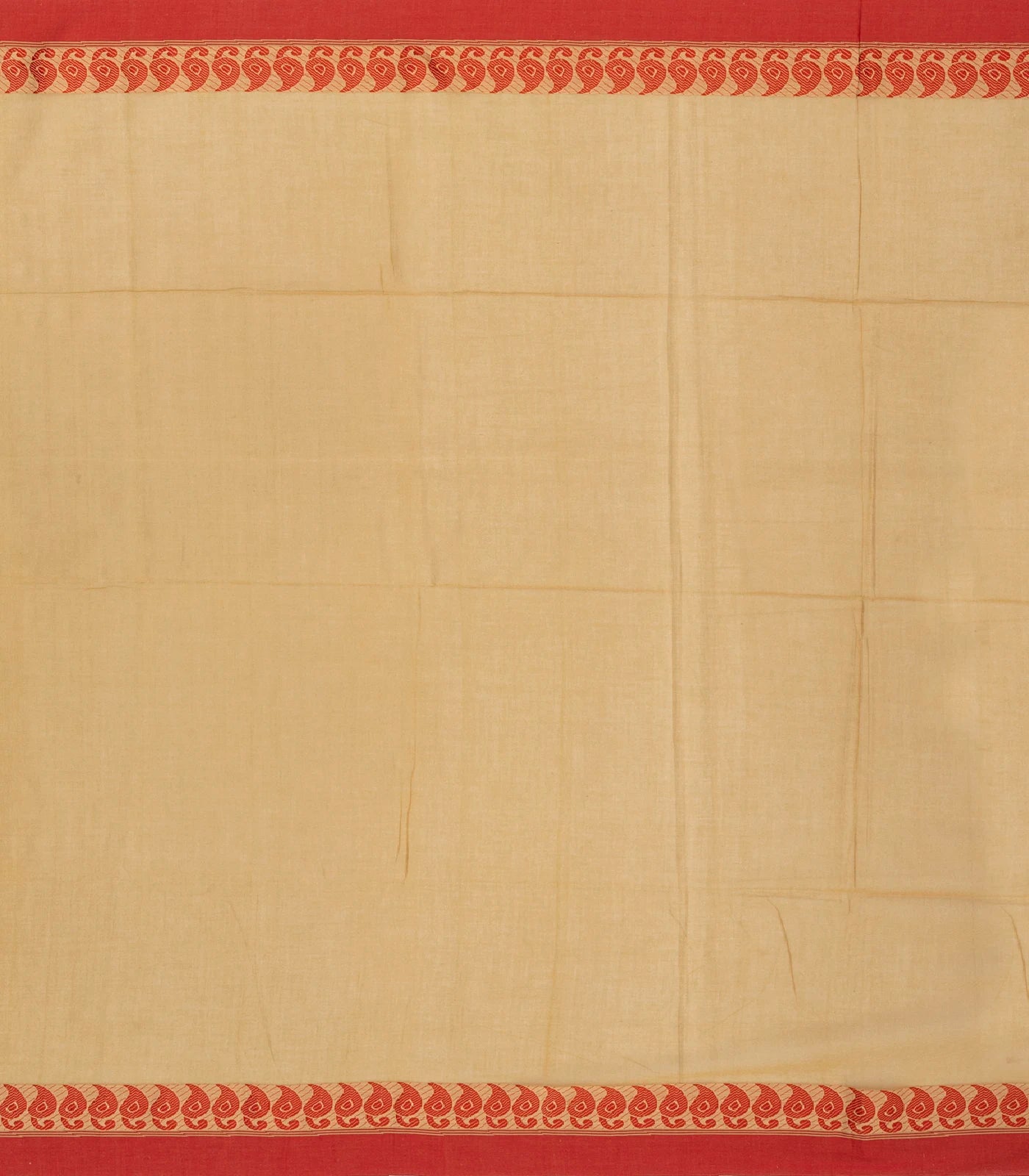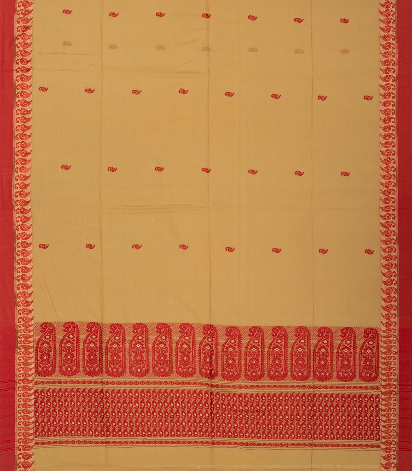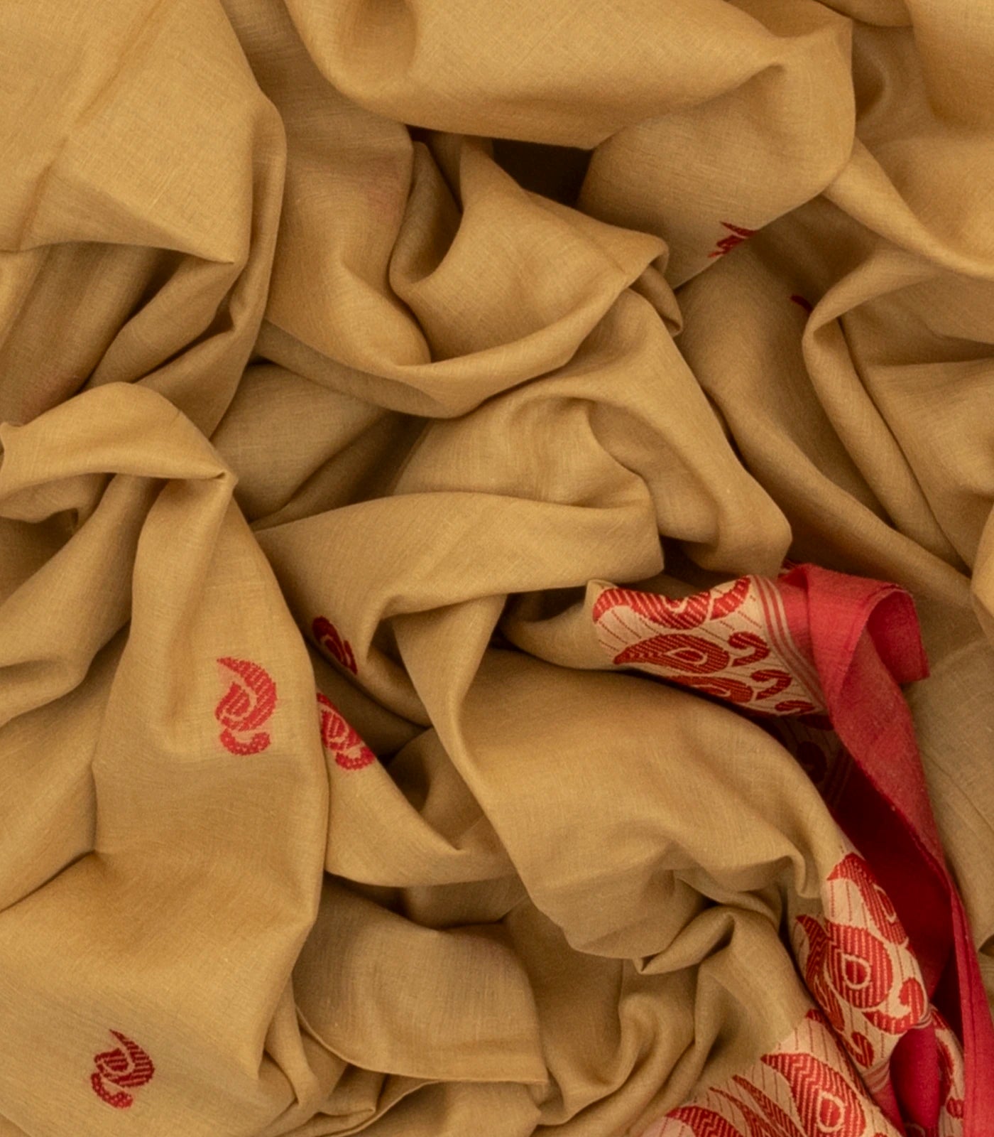 Dark Beige Handloom Bengal Cotton Saree With Mango Motifs-BG1252