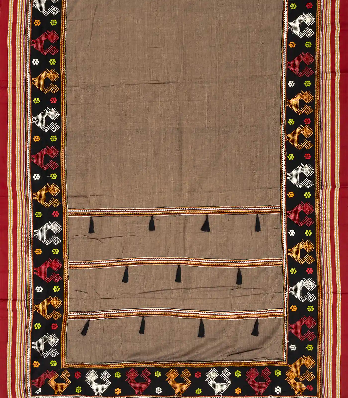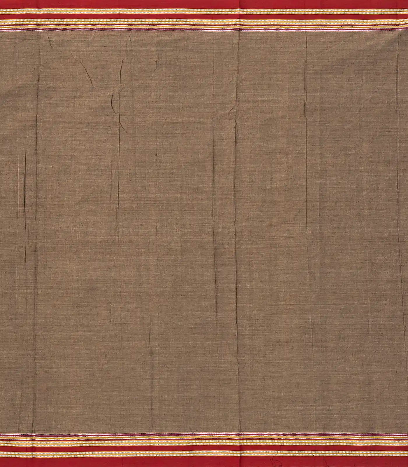 Dark Beige Woven Cotton Saree With Kasuti Hand Embroidery Motifs-EN1756