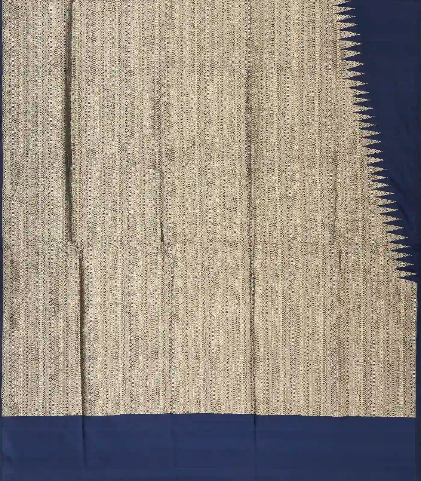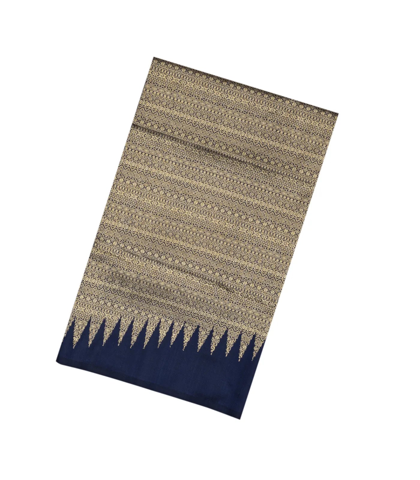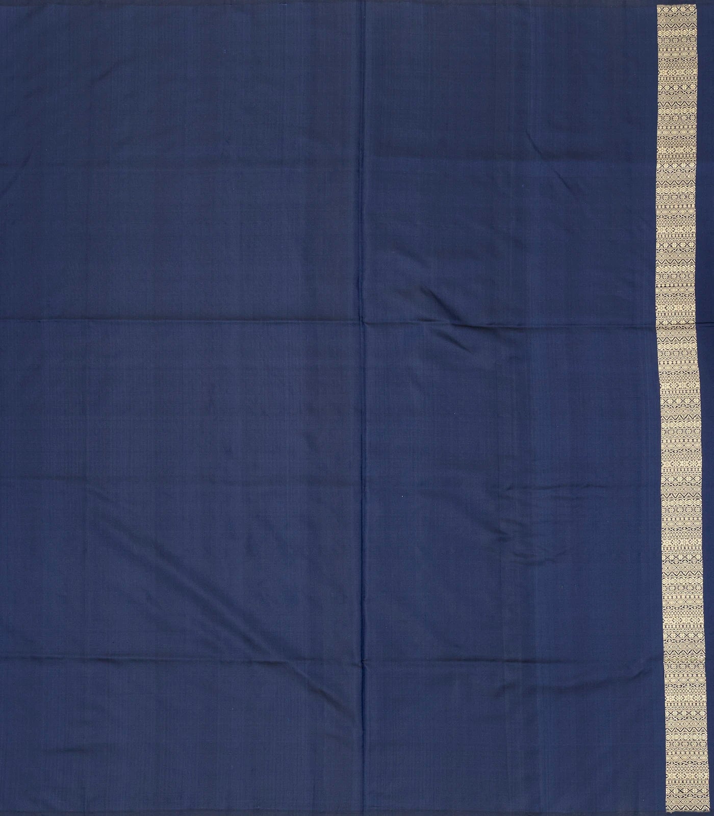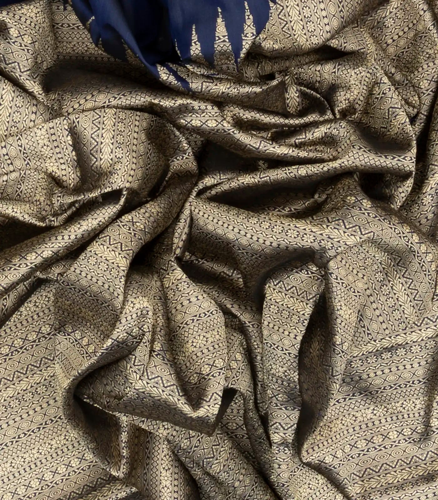 Dark Blue Handloom Banarasi Silk Saree With Floral Motifs In Rising Border-BE1359