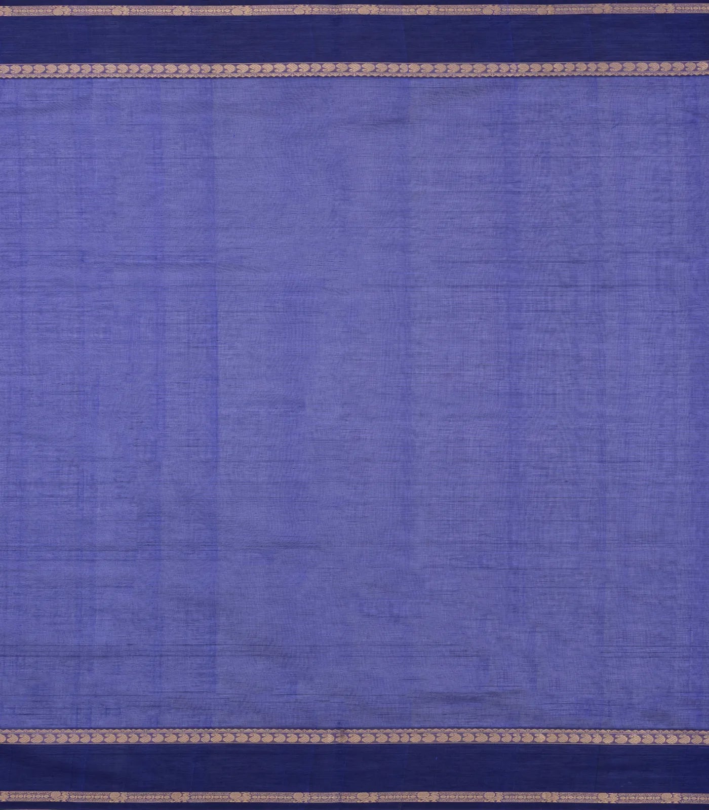 This handwoven silk cotton saree is filled with zari checks in dark blue body along with zari border and pallu