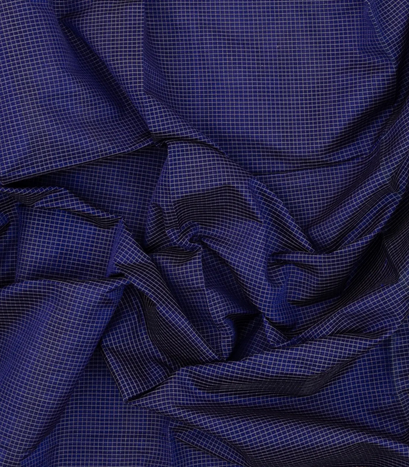 Dark Blue Handloom Silk Cotton Saree With Zari Checks-SC3927